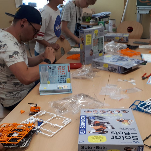 Am Montag, den 6. Mai starteten unsere diesjährigen Projekttage. In 15 Gruppen dreht sich alles um die "Unterwasserwelt". Klassenübergreifend forschen und fertigen die Kinder u. a. zu den Themen "Kommunikation unter Wasser", "Unterwasser-Roboter", "Versunkene Städte" oder "Plastik im Meer". Am Mittwoch werden beim Hausrundgang ab Mittag untereinander alle Ergebnisse präsentiert.