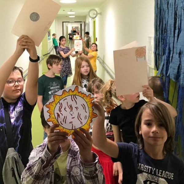 5 Tage ging es bei uns im Juni ums Staunen: über die Wunder dieser Erde, über Wissenschaft und Forschung. Von Tier-Rekorden und Fluggeräten über die unendlichen Weiten des Weltraums bis hin zu Dinosauriern, Dschungel und Zukunftsideen - die Vielfalt der Themen aller Klassen war riesig. Diese Fotogalerie gibt einen kleinen Einblick ins Tun unserer kleinen Forscherinnen und Wunder-Entdecker: