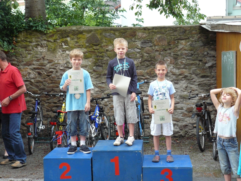 Gemeinsam liefen wir zum Landesgartenschaugelände, auf dem eine Runde markiert war. Nach einer kurzen Erwärmung ging es auch schon los. Die Kindergärten eröffneten den Crosslauf mit einer Runde. Anschließend kamen die Klassen zum Einsatz, wobei jede Klassenstufe sowohl Jungen als auch Mädchen getrennt liefen. Die Klassen 1 und 2 mussten eine Runde, Klasse 3 und 4 jeweils zwei Runden laufen. Die drei erstplatzierten Schüler durften dann an dem regionalen Crosslauf aller Grundschulen teilnehmen.