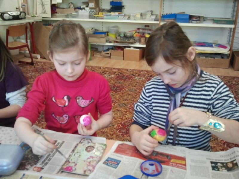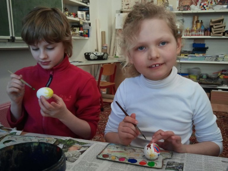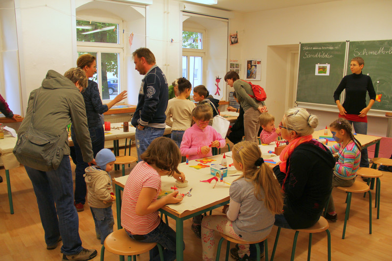 Der Aktionstag "Fremde Kulturen" war vielfältig und bunt. Zu Gast waren zum Beispiel Frau Kira Bubnova aus Rußland und Herr Ahmed Ali aus Syrien. Wir schauten uns Fotos aus ihren Ländern an und erfuhren, dass man zum Teetrinken in Russland einen Samowar braucht. Trotz der vielen Unterschiede zwischen den einzelnen Kulturen haben wir zwei Dinge festgestellt: alle Menschen haben die "Nase vorn" und Musik verbindet uns. Das probierten wir auch gleich aus und lernten zwei Strophen unseres Lieblingsliedes auf russisch und kurdisch. Lehrreich war das Namenschreiben in Arabisch und auch an Genüssen hat es an diesem interessanten Tag nicht gefehlt: wir verkosteten allerhand exotische Leckereien.