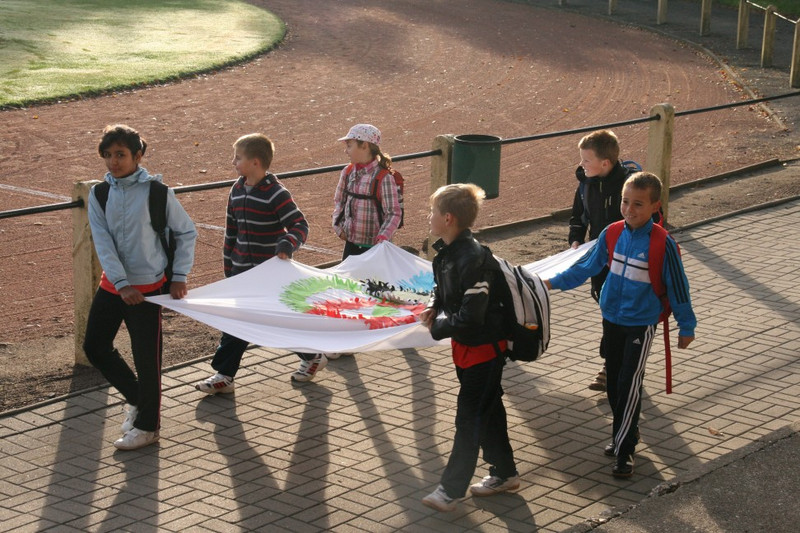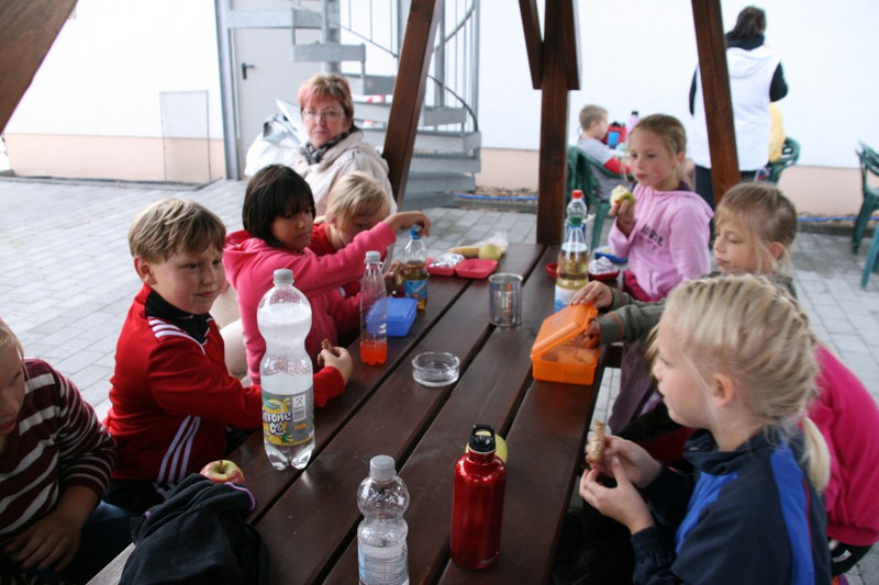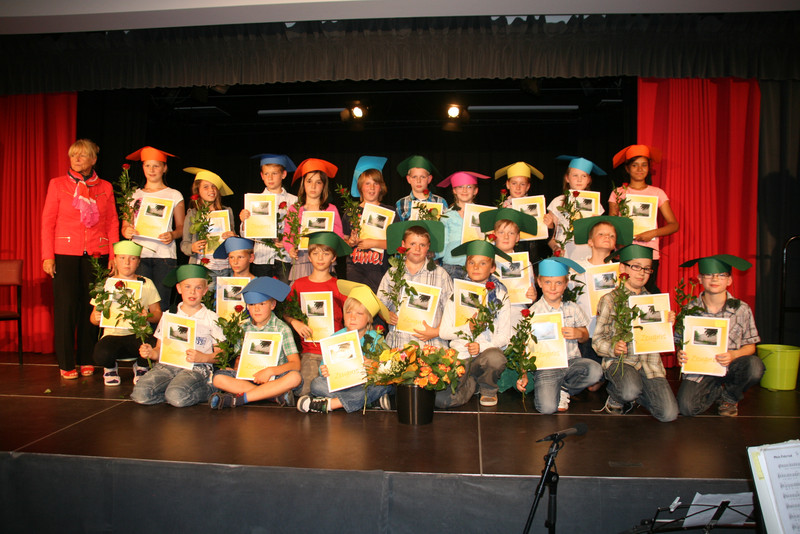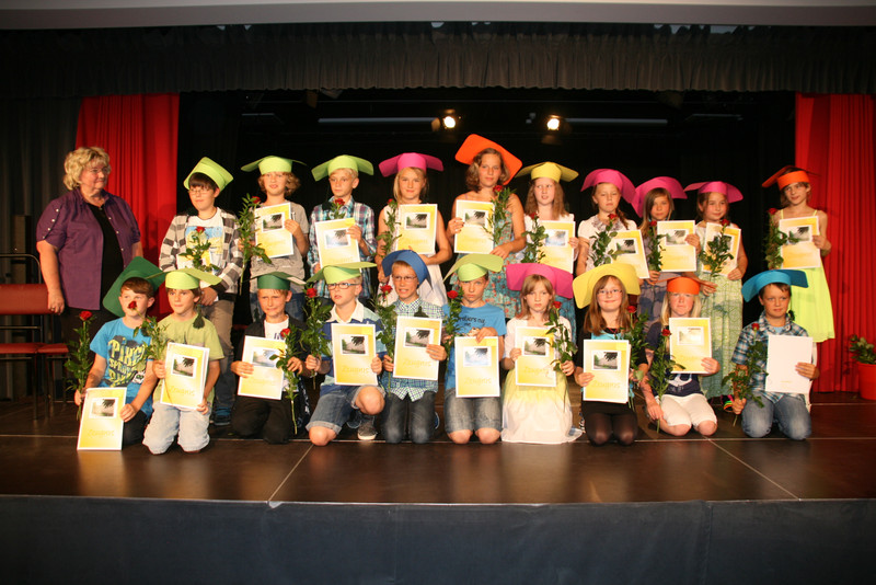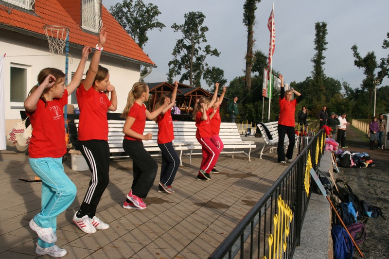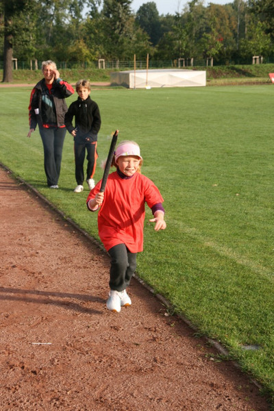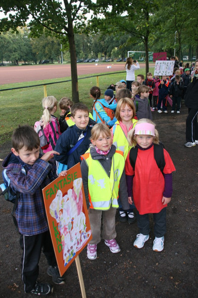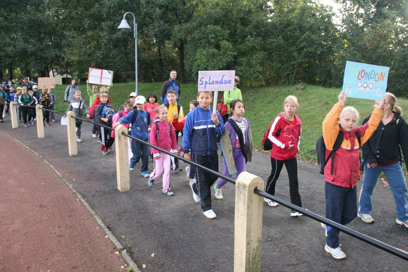 Aufgrund unseres Schuljubiläums „20 Jahre Grundschule“ veranstalteten wir am Freitag, den 21.09.12, unser Sportfest, an dem auch Eltern und Geschwister teilnehmen konnten. Dieser Tag stand ganz im Zeichen von Olympia. Nachdem alle Aufstellung genommen hatten, wurde typisch olympisch, die Fahne herein getragen, das olympische Feuer entzündet sowie der olympische Eid gesprochen. Nun konnte es losgehen. Alle Klassen hatten 10 Stationen zu bewältigen, wobei der Spaß natürlich im Vordergrund stand, denn es ging nicht um Leistung. Nach der Hälfte der Stationen konnten sich die Sportler und Helfer bei Butterbroten (es war auch Tag des Butterbrotes) stärken, um auch die letzten Disziplinen erfolgreich zu beenden. Nachdem alles geschafft war, folgte die Siegerehrung. Dabei konnten alle Mannschaften Urkunden und Preise in Empfang nehmen. Geschafft und zufrieden konnte nun der Heimweg angetreten werden.