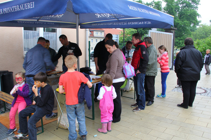 Eröffnet wurde das Fest durch Beiträge unserer drei Chorklassen. Anschließend konnten die Schüler auf Punktejagd gehen. Innerhalb von vier Stunden mussten sechs Stationen absolviert werden, an denen alle mit Freude um viele Punkte kämpften. Folgende Stationen mussten dabei durchlaufen werden: Blechdosenwerfen, fühlen und riechen, Kirschkernweitspucken, Märchenpuzzle, Tischtennis-Wassertragen, Nagelschlagen. Neben diesen Herausforderungen gab es noch weitere Angebote für unsere Kinder. So konnten sie sich schminken und massieren lassen, es wurde gebastelt oder mit Kreide auf dem Hof gemalt. In der gesamten Zeit war es den Schülern auch möglich, ihre Gutscheine für Essen und Trinken einzulösen. So gab es neben kleinen Getränken auch Bratwürste, Hot Dogs und Waffeln.