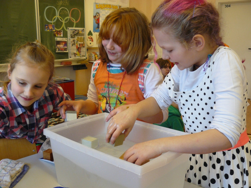 In unserer diesjährigen fächerverbindenden Schulprojektwoche drehte sich alles ums Thema „Gesunde Ernährung“. Auch Tischsitten und das Essen und Trinken in einer angenehmen Umgebung spielten eine Rolle. Uns Lehrern war aufgefallen, dass die wenigen Stunden, die im Sachunterricht dazu zur Verfügung stehen, keine Ausführlichkeit und Nachhaltigkeit zulassen. Bei der Auswahl der Gruppeninhalte zeigte sich eine vielfältige Spannbreite. Vor allem das Kennen lernen und Zubereiten von Speisen, Basteln, darstellende Spiel sowie Gestalten und Dekorieren nahmen viel Raum ein. Bei der Auswertung des Projektes schätzten die Schüler vor allen diesen Punkt als besonders toll ein. In diesem Jahr wechselten die Gruppen nach zwei Tagen. Dadurch wurde das Wissen in mehreren Bereichen erweitert. Den Kindern gefiel auch diese Variante. Durch das Führen eines Projekthefters sammelten sie alle Materialien und können diese auch im folgenden Sachunterricht weiter nutzen. Die im Vorfeld vom jeweiligen Projektgruppenleiter ausgegebenen Vorbereitungsaufträge wurden allerdings nicht von allen Schülern ernst genommen. Auch beim diesjährigen Projekt stellten alle Beteiligten wieder auswertend fest, dass unsere Idee des klassenübergreifenden Arbeitens sehr positive Auswirkungen auf das Lernen hat. Die größeren Schüler helfen wie selbstverständlich den jüngeren, z.B. beim Lesen oder Erfüllen von Aufträgen. Die Kinder lernen Mädchen und Jungen anderer Klassen und auch „neue“ Lehrer kennen, was den nachfolgenden Schulalltag positiv beeinflusst. Immer wieder fällt uns auf, dass gerade in diesen Tagen des gemeinsamen Lernens manche Kinder „aus sich rauskommen“, eine andere Seite von sich präsentieren. Spaß und Freude spürt man bereits am Morgen, wenn die Schüler mit einem Lächeln grüßen.