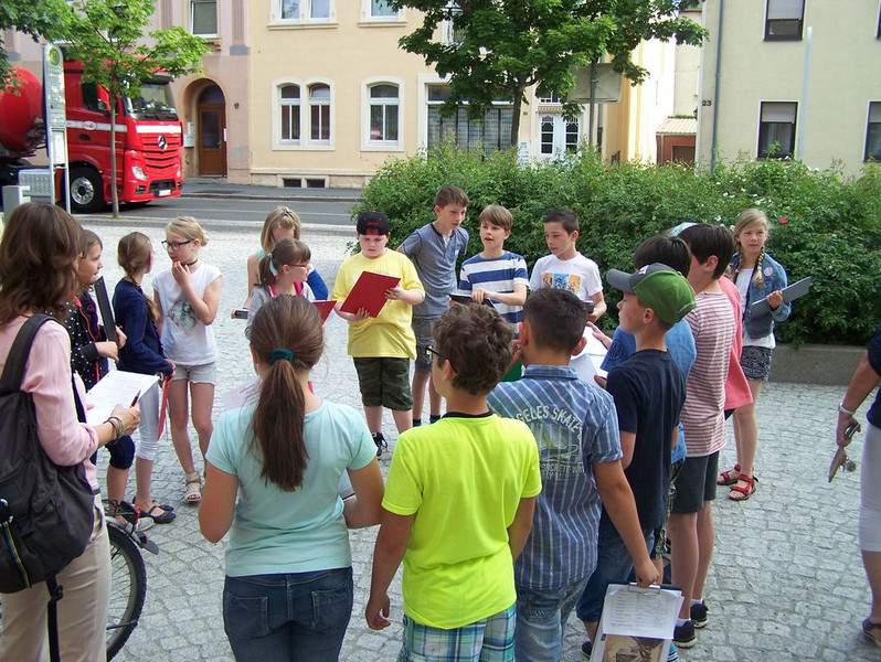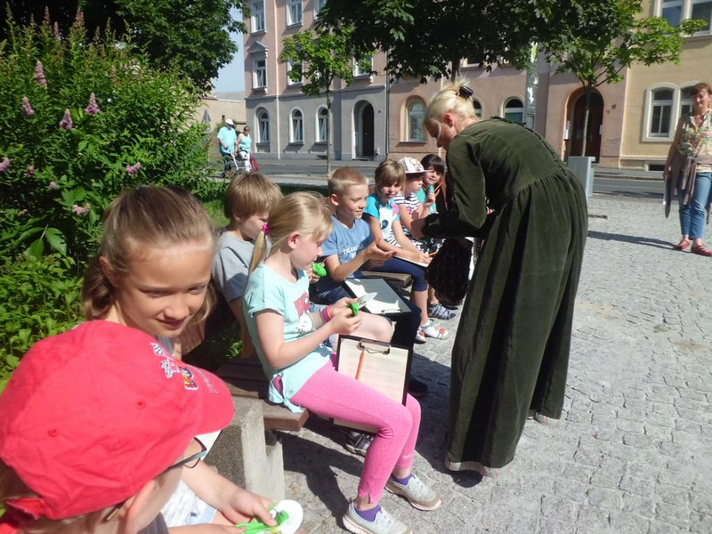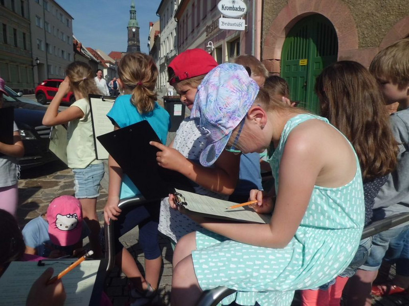 Zum Kindertag konnten wir etwas ganz besonderes erleben: die Stadtgeschichtenerzähler*innen der Klasse 4a führten uns durch Großenhain. Sie waren ein bißchen aufgeregt.