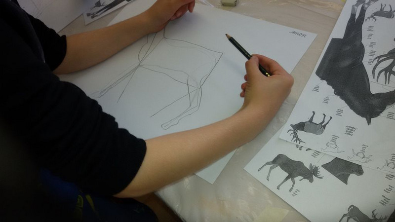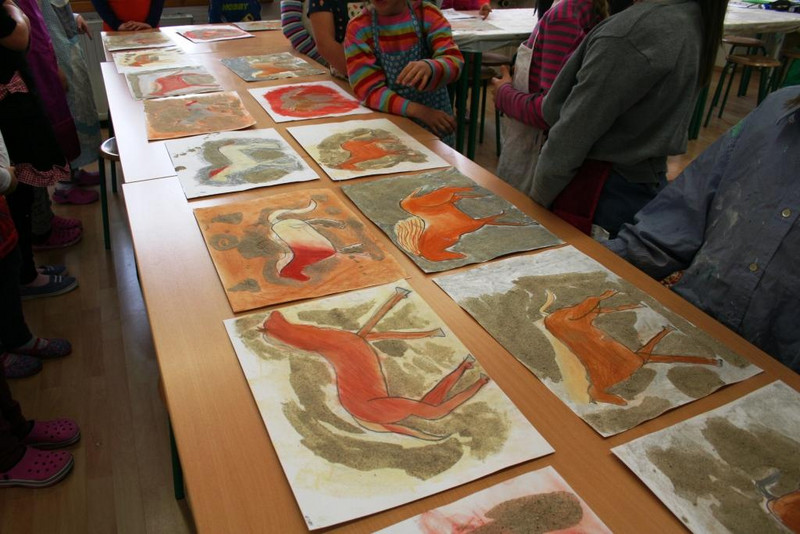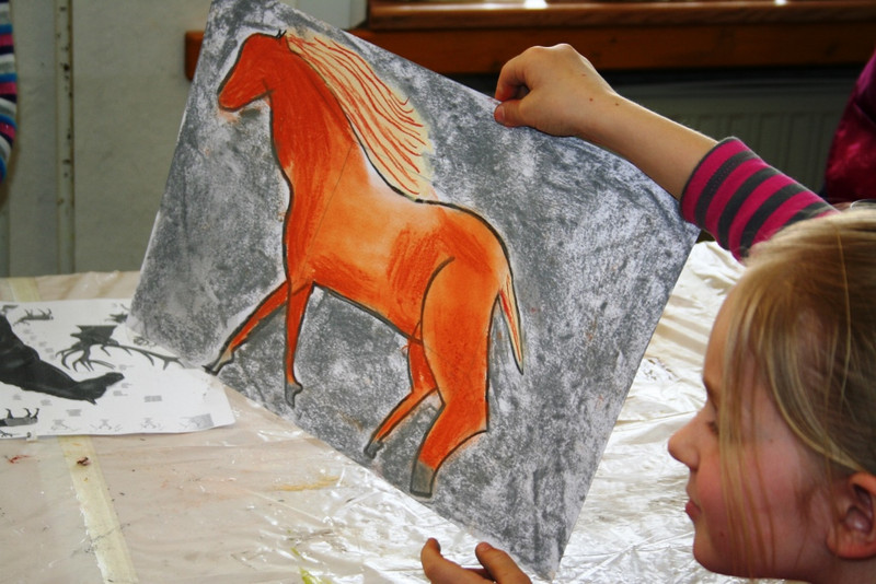Mit Herrn Ferbert versuchten wir uns an der Zeichnung eines Pferdes, in der Art der Malereien in alten Höhlen. Wir begannen mit einer Bleistiftskizze.