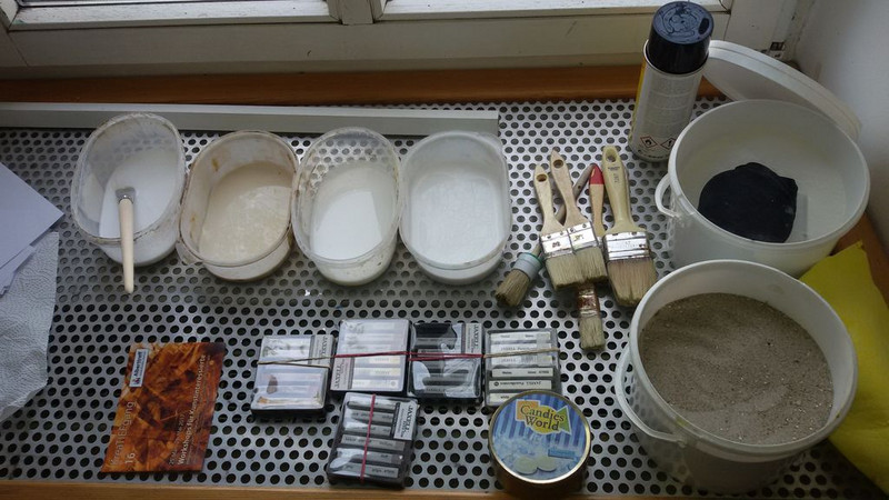 Nach dem Ausstellungsbesuch arbeiteten wir im Kunstraum unserer Schule weiter. Das war natürlich sehr praktisch, da unsere Klassenlehrerin Frau Seiler ja auch unsere Kunstlehrerin ist. Alle Materialien stehen bereit.