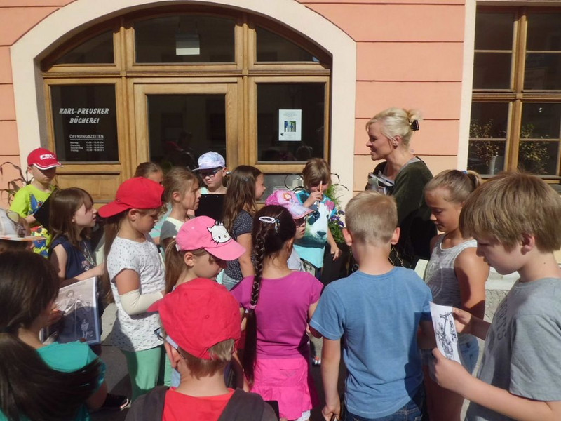 Karl Benjamin Preusker war bereits vor der Stadtführung für uns kein Unbekannter. Wir stehen hier vor seinem Wohnhaus, am Eingang zur Preusker-Bücherei.