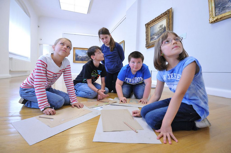 Bevor wir selbst mit unserem eigenen Projekt loslegen, besuchten wir im September zwei sehr schöne Angebote in zwei Chemnitzer Museen. In der Kunstsammlungen ging es etwas ruhiger zu und wir konnten natürlich die gemälde aus der Zeit der Romantik nicht anfassen. Aber es gab eine Menge Geschichten dazu zu erzählen. Und die meisten sind uns selbst eingefallen! Anschließen haben wir versucht, selbst in der Art und Weise zu zeichnen, wie die Maler das im 18. Jahrhundert gemacht haben.