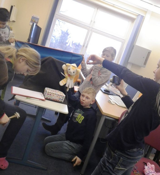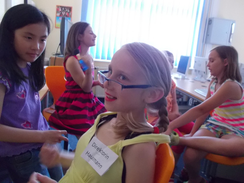 Im Mai haben wir begonnen, Ideen für eine Fotostory zu sammeln. Unsere Geschichten hatten zum Beispiel folgende Titel: „Ein guter Donnerstag oder ein schlechter…“ oder „Der Schatz im Keller“ oder „Das Schulgespenst“. Wir schminken für unsere Geschichte eine „Direktorin“ Vivien in der Rolle von Frau Hausmann. In der Geschichte spielen Mira (Maria) und Elisa (Gina) die Hauptrollen. Außerdem ein Hausmeister, eine Direktorin und Finja (Nelly) und Jana (Kora). Allerdings konnten wir nicht alle Geschichten „verfotografieren“. Wir haben uns für Carolins Geschichte : „Vor längst vergangener Zeit“ entschieden. Dazu haben wir abgestimmt. Jede von uns konnte zwei Stimmen vergeben. Bevor wir starteten, mussten wir erst einen Plan aufstellen und Requisiten besorgen. Zum Beispiel: Hausmeisterklamotten, Bücherkiste, Sachen für die Direktorin und sogar einen BH. Wir arbeiteten auch mit Tricks. (Mit welchen verraten wir aber nicht…) Wir fotografierten an verschiedenen Orten im Schulgebäude, z.B. im Keller, im Flur vor dem Sekretariat und vor dem Computerraum. In der letzten Schulwoche wollen wir unsere geschichte "druckreif" haben. Ihr könnt sie dann an unserer neuen Pinnwand vor dem Computerraum anschauen.&nb