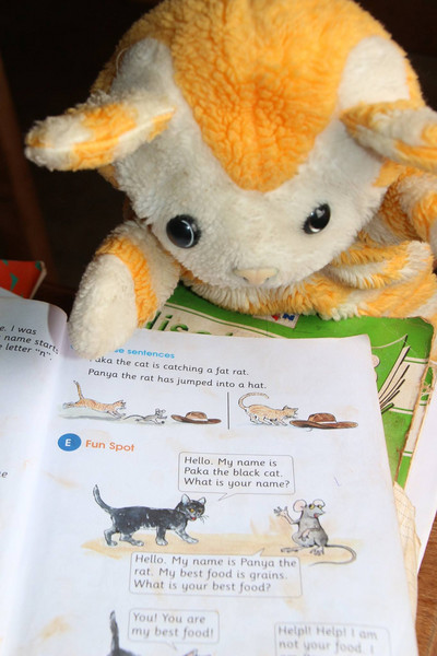 Mimi: Einer musste ja zu Hause bleiben und weiter beim Lernen in der 1a helfen. Außerdem hatte Mimi den schöneren Namen. Mimi bedeutet nämlich auf Kisuaheli (das ist die wichtigste Sprache in Tansania) „ich“.