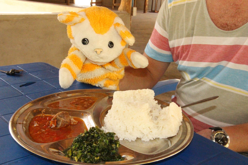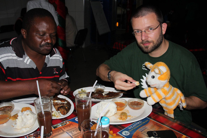 Stefan Jänke: Das kommt bissl auf die Gegend an, in der man gerade ist. Überall isst man Ugali – das ist Maisbrei, dann gibt es die Kochbananen, die auch fast überall wachsen, Reis wird auch sehr viel gegessen, es gibt auch mehr und mehr Kartoffeln – z.B. als Süßkartoffel! Dazu gibt es noch Hirse. Das war früher bei uns auch mal üblich, jetzt ist es meist nur noch im Vogelfutter. Brot gibt es praktisch gar nicht – das ist praktisch nur was für Ausländer. D.h. es wird auch immer gekocht; von Frühstück bis Abendbrot!