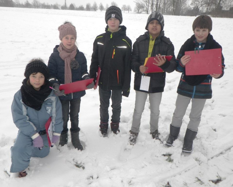 Wir entdeckten auf unserem Vogelbeobachtungsgang durch das LGS-Gelände vor allem Haussperlinge und Eltern und Rabenkrähen. Im Winter sind nicht viele Vögel draußen unterwegs. Die Haussperlinge verstecken sich oft in dichten Hecken. Wir hatten für unsere Zählung Protokolle von der Internetseite des NABU. NABU ist der Naturschutzbund. Dort gibt es auch Fotos und die Stimmen der einzelnen Vögel. Klickt mal hier.