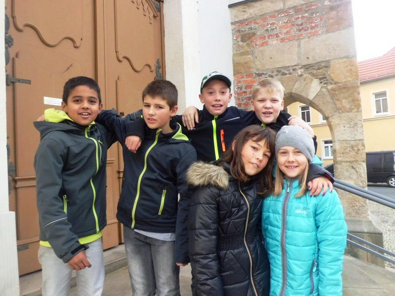 Frau Reichle vom Forum für Baukultur in Dresden hat über Großenhain und über die Rechte einer mittelalterlichen Stadt gesprochen. Sie hat uns über die Münzrechte und Stapelrechte erzählt und über den Sinn und Zweck der Stadtmauer gesprochen. Im Keller unserer Grundschule sind Reste der Stadtmauer zu sehen und für Besucher zugänglich gemacht. Anschließend waren wir im historischen Klassenzimmer, das ist der Außenposten des Werner –von –Siemens Gymnasiums (Außenstelle) und Frau Schmager hat etwas über die frühere Schule erzählt. Frau Schmager hat uns freundlich begrüßt. Sie hat uns das Historische Klassenzimmer gezeigt. Wir haben andere Namen bekommen wie z.B. August, Mia und Kurt. Frau Schmager hat uns unterrichtet wie zur Zeit des Kaisers. Wir haben mit einem Griffel und einer Schiefertafel geschrieben. Die Kinder vom GTA Pegasus und Frau Kliem haben uns begleitet.