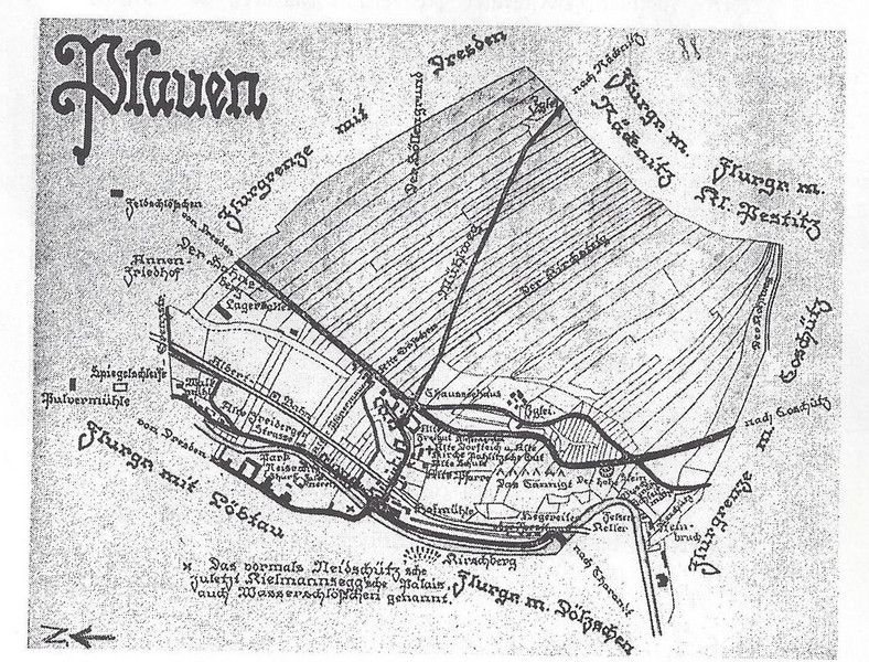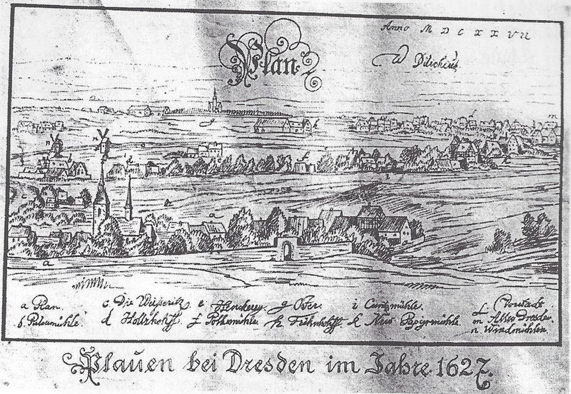 Der Name des ursprünglichen Dorfes Plauen kommt aus dem slawischen „plaw“ und bezieht sich auf das Schwemmland oder die Flussaue, denn die wildschäumende Weißeritz hatte mächtige Geröllmassen an den Ausgang des Plauenschen Grundes gewälzt. Dieses Gebiet wurde damals von den Slawen besiedelt. Nachdem Heinrich I. dieses Gebiet im Jahr 929 eroberte, wurde aus der slawischen Siedlung ein typisches mittelalterliches Dorf, welches sich einst um den Dorfteich am heutigen F.-C.-Weiskopfplatz befand, der erst 1875 aufgefüllt wurde.