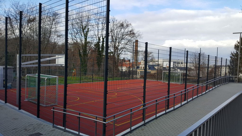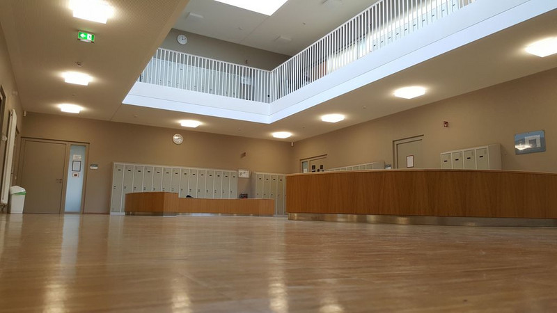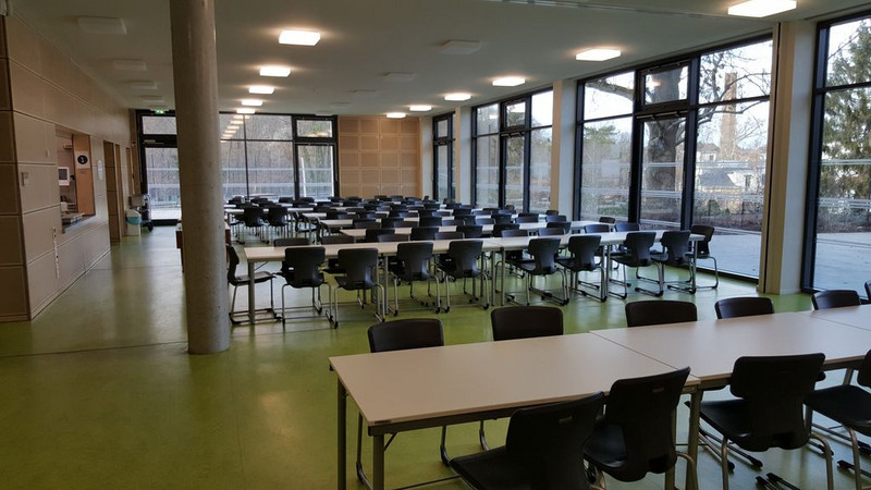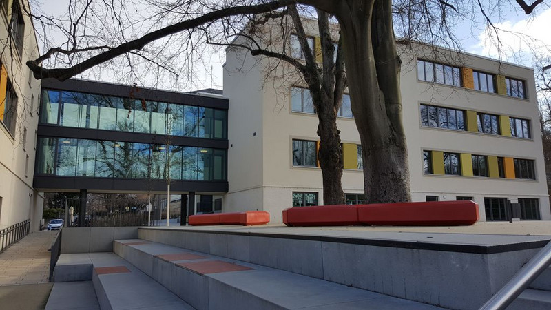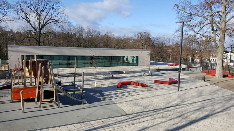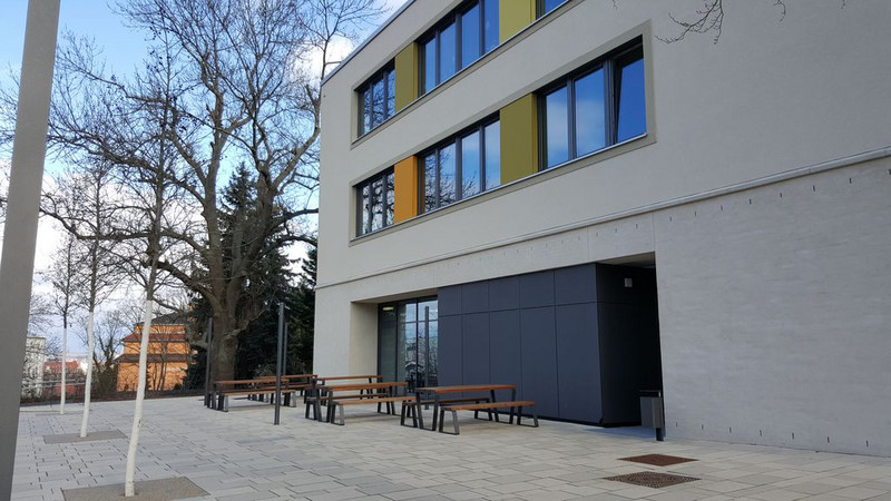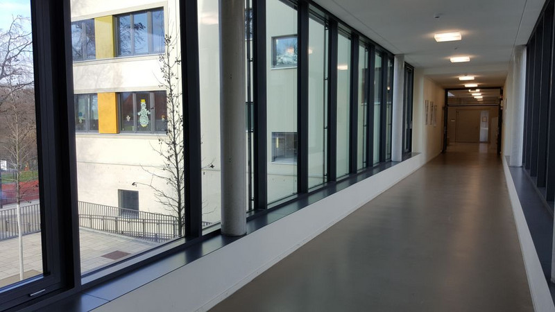 Rundgang Der neue Schulhof mit Spiel- und Sitzelementen und dahinterliegender Turnhalle. Ein Blick ins Erdgeschoss Durchgang vom A-Haus (Schule) zum N-Haus (Hort). Das Atrium im N-Haus Unser Sportplatz neben der Turnhalle Seitenansicht des N-Hauses mit Sitzmöglichkeiten für warme Tage Unser "Grünes Klassenzimmer" unter der Linde mitten auf dem Schulhof Der Speiseraum