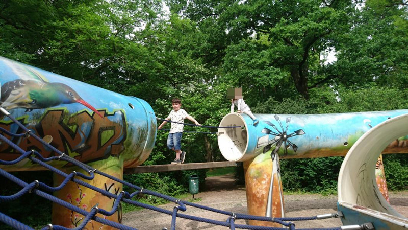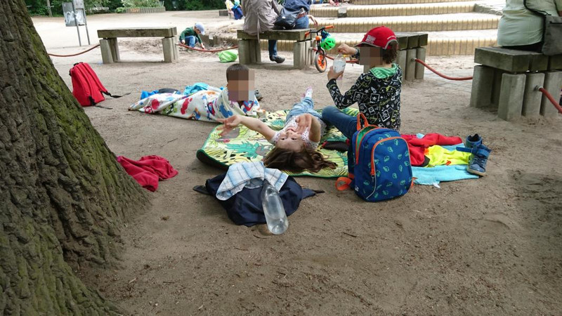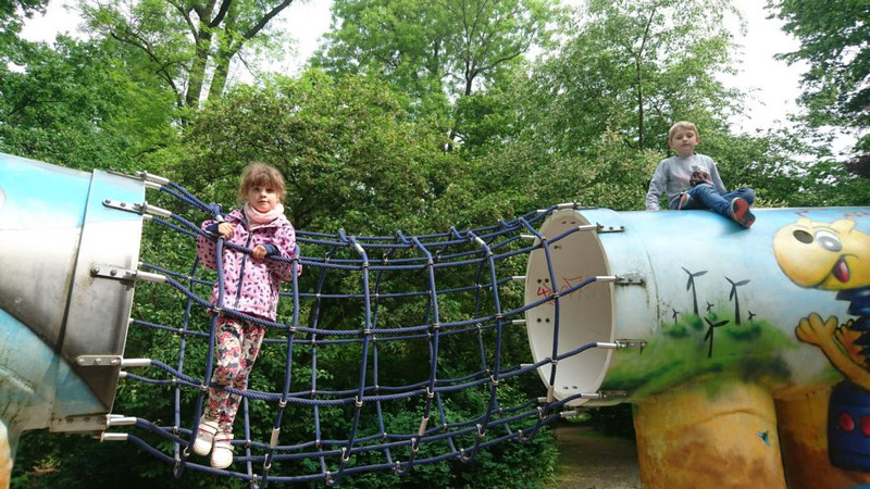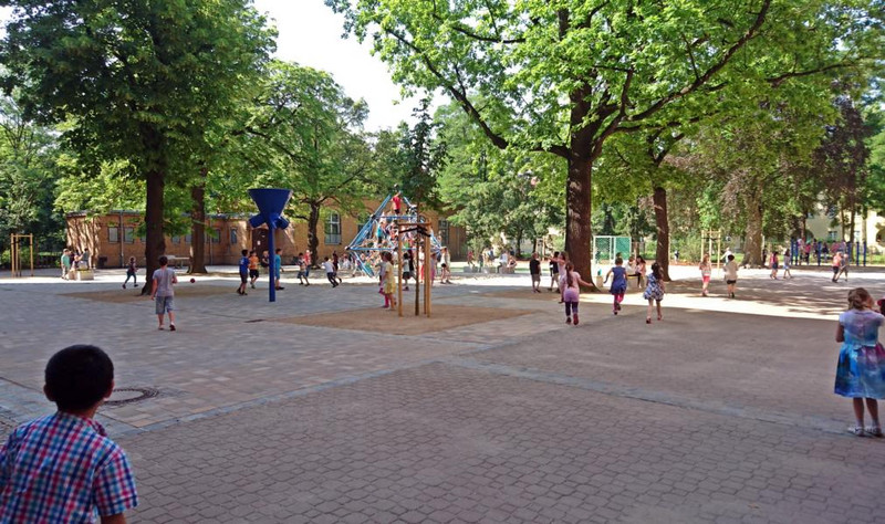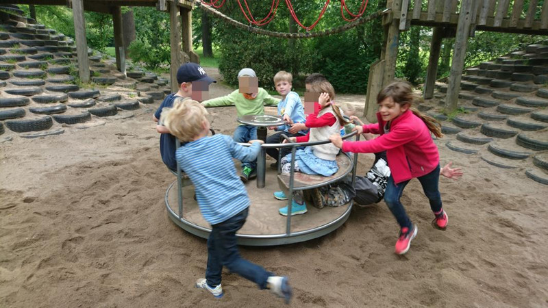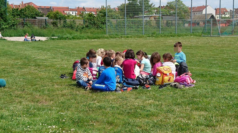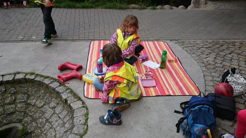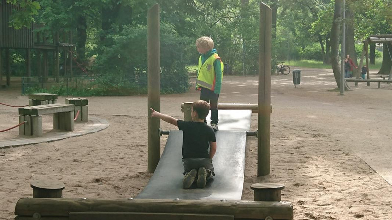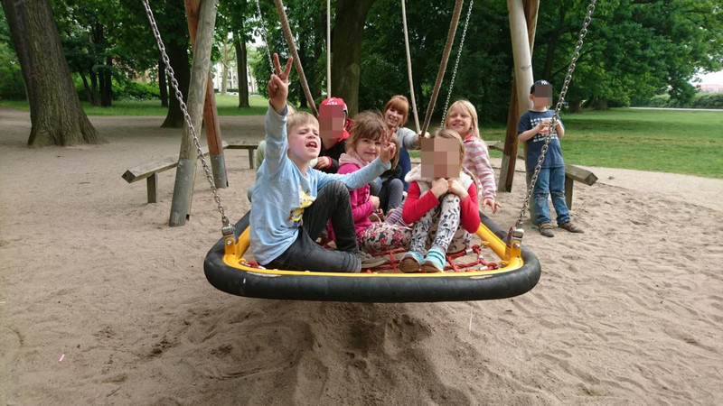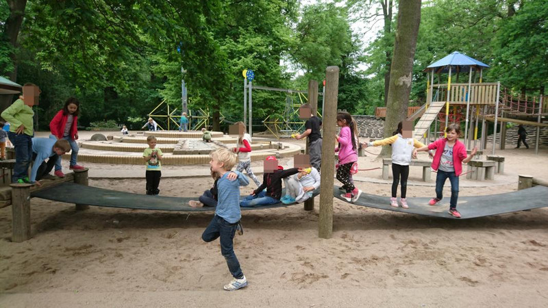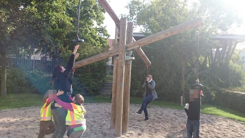 Auf dem Spielplatz an der Helmholtz-Schule konnten wir toben, klettern, Fange spielen, wippen oder einfach nur auf der Decke sitzen und schnattern. Frau Bregar und Frau Schulz wollten auch unbedingt mal Wippen. :)