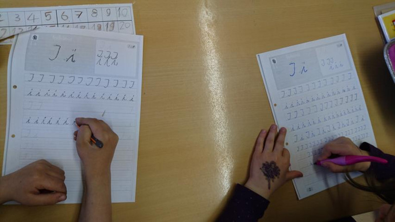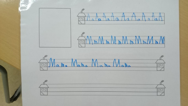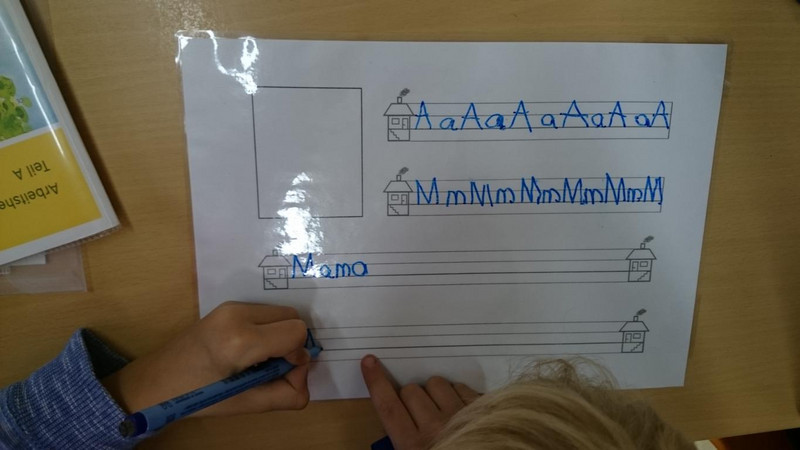 Seit 1 Woche lernen wir ab jetzt jeden Freitag das Schreiben wie Erwachsene. Das nennt sich dann "Schreibschrift" oder verbundene Schrift. Das heißt deshalb so, weil wir nun lernen müssen, unsere Druckbuchstaben miteinander zu verbinden.
