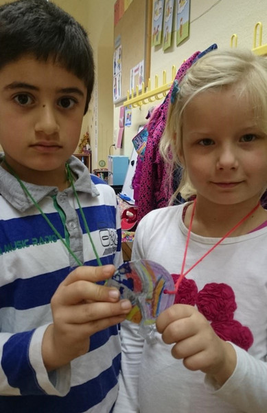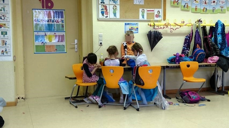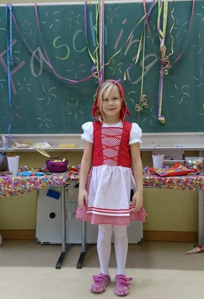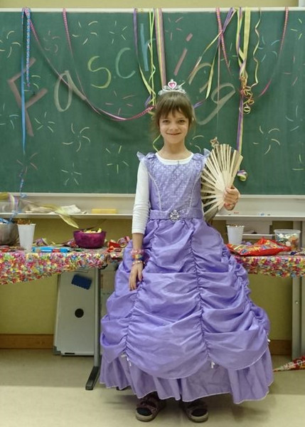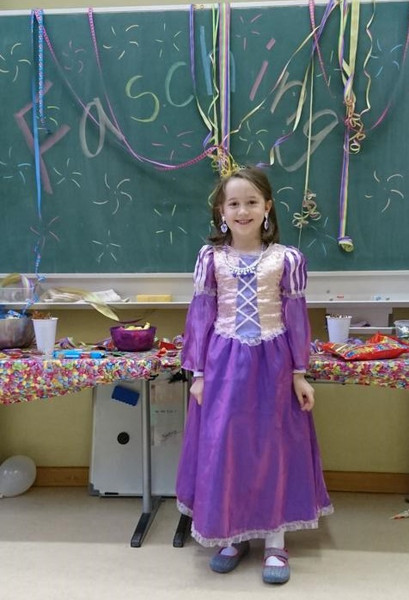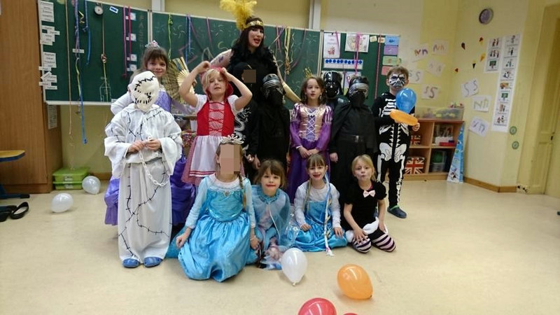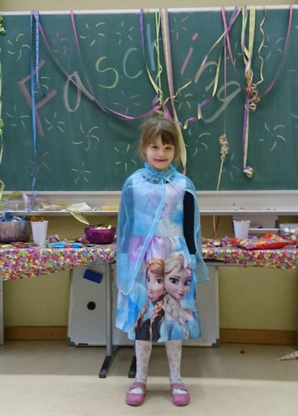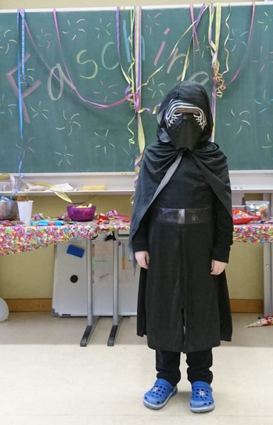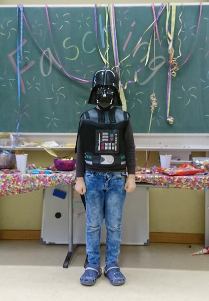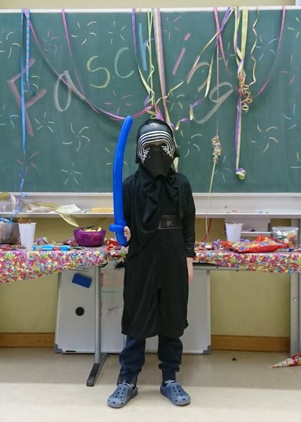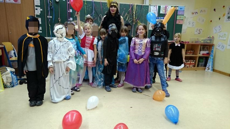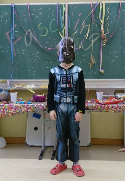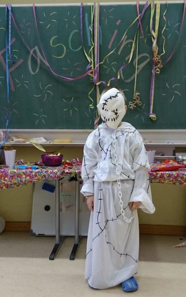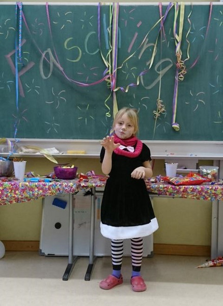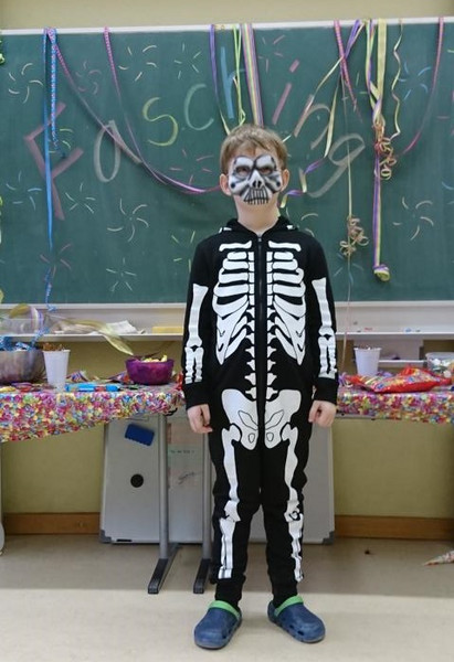 Wir starteten mit einem Begrüßungslied, wo alle Kostüme im Kreis vorgestellt wurden. Wir hatten mehrere Male "Star Wars", auch Prinzessinnen und Feen gab es reichlich. Auch beglückten uns ein paar Elsas mit ihrer Anwesenheit. Batman war da, um alle zu retten, falls es Probleme gibt. Außerdem gab es: einen Y-Hai, Rotkäppchen, eine Katze, ein 20er Jahre Charleston Girl (Frau Bregar), einen Cowboy, ein Gespenst ein Ninja oder ein Gerippe...