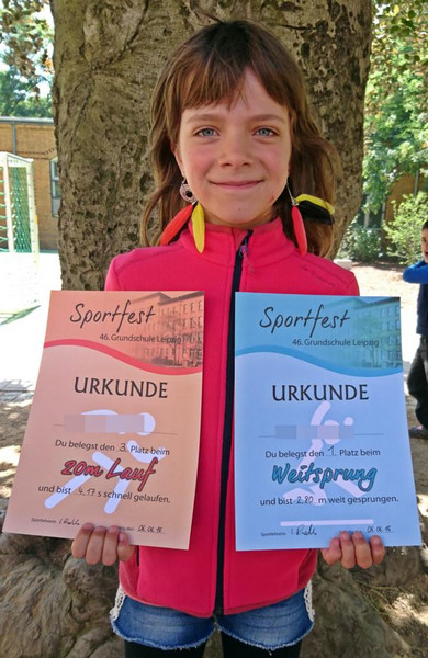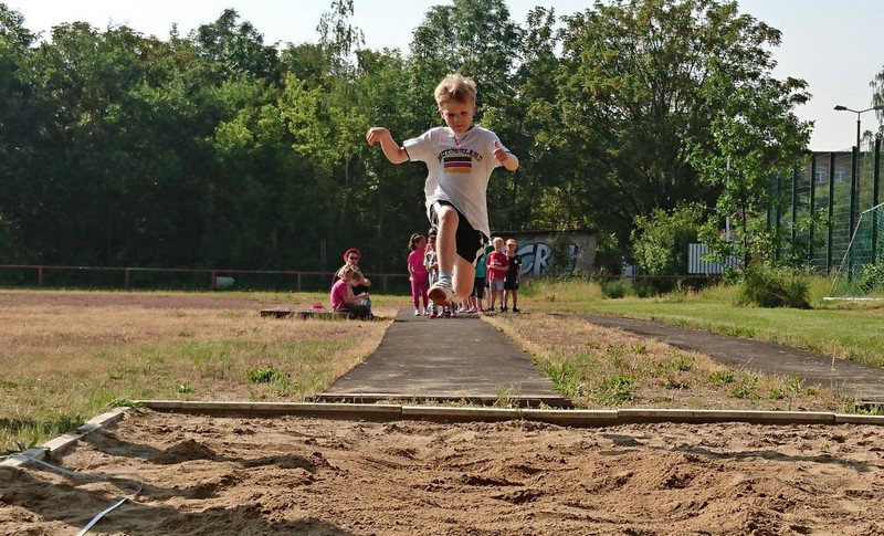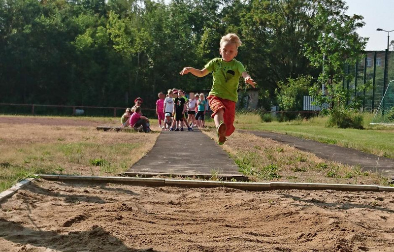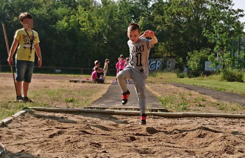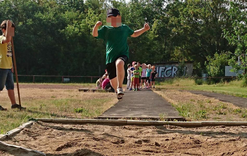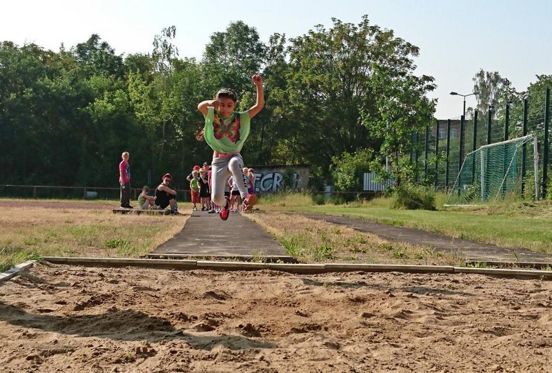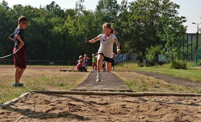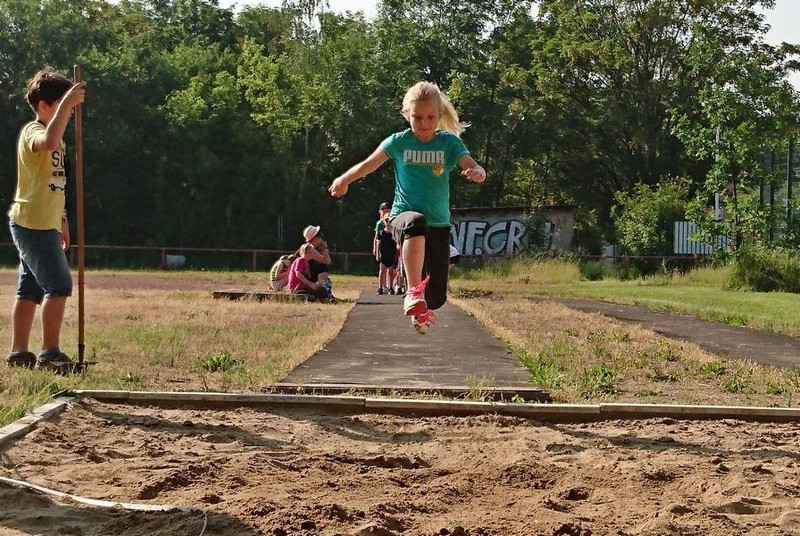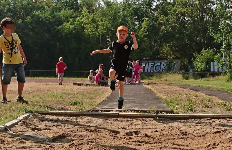 Nach der Begrüßung, dem Entfachen des "olympischen Feuers", dem Vortragen des olympischen Gedankens und der Erwärmung ging es dann für uns los mit Weitsprung. Hier erzielten wir viele super Weiten! Sehen wir nicht super sportlich aus? ;-)