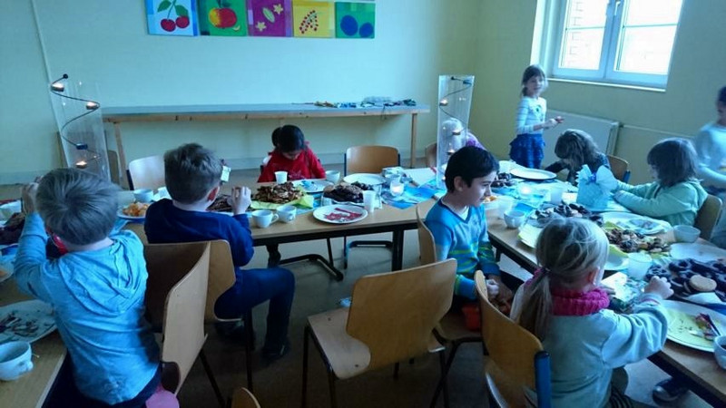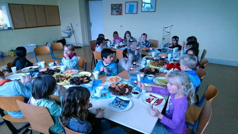 Als wir danach wieder zu unseren Plätzchen gingen, hatte Frau Teich bereits alles vorbereitet. So konnten wir endlich unsere leckeren Plätzchen und Lebkuchen essen.