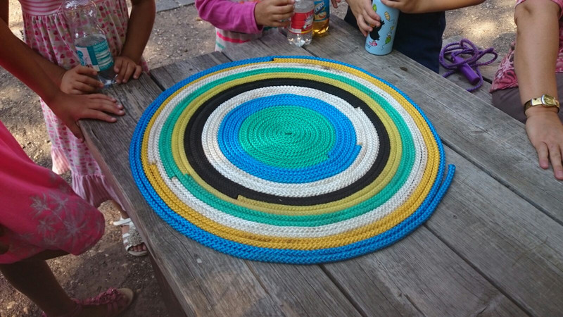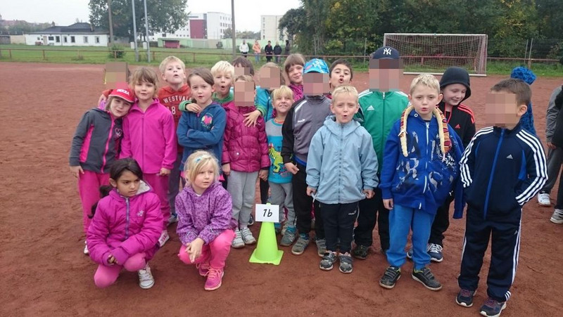 Dort angekommen, stellten wir die Taschen ab und suchten unseren Stellplatz. An diesem mussten wir immer vorbei rennen und uns unseren Gummi holen. Jeder Gummi stand für 1 gelaufene Runde. In 30 Minuten hat unsere gesamte Klasse 1b 287 Runden geschafft!! WOW!