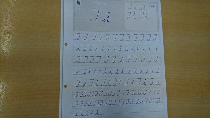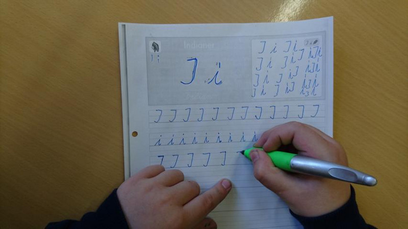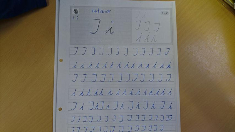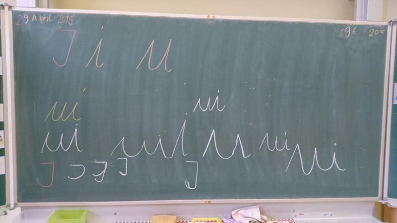 Das sieht viel geschwungener aus - ist aber auch ganz schön schwer zu lesen. Das Schreiben von i und I, sowie u und U gelang uns schon ganz gut.