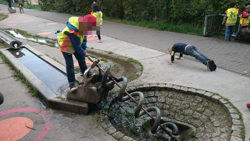 Am Freitag, den 25.09.2015 machten wir gemeinsam mit Frau Bregar, Frau Teich und unserer Schulsozialarbeiterin Frau Schulz unseren 1. Ausflug. Zu Fuß ging es erst zum Wasserspielplatz am Kanal. Dort hielten wir uns über 1 Stunde auf und auch Frau Bregar und Frau Teich hatten Ihren Spaß!