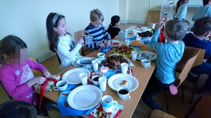 Im Dezember hatten wir eine Weihnachtsfeier. Wir haben Plätzchen gebacken. Das hat viel Spaß gemacht.