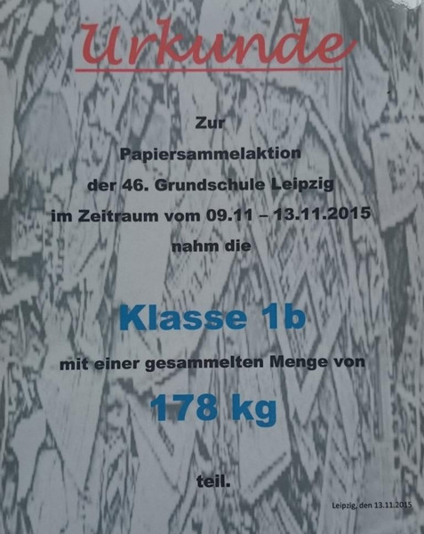 Wir, die Klasse 1b & Frau Bregar, möchten uns ganz herzlich bei allen Eltern, Omas, Opas, Tanten, Onkels, Freunden und Bekannten bedanken, die uns bei der Papiersammelaktion im April SO fleißig unterstützt haben!