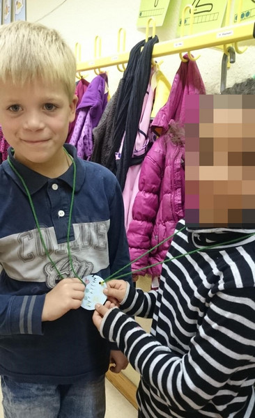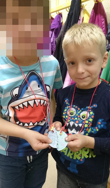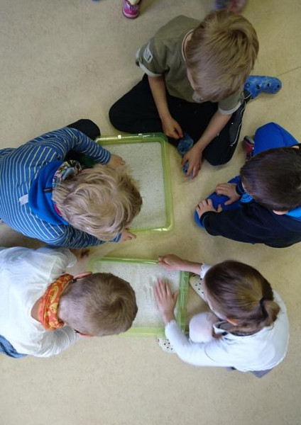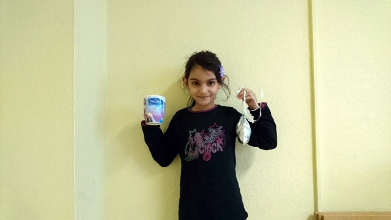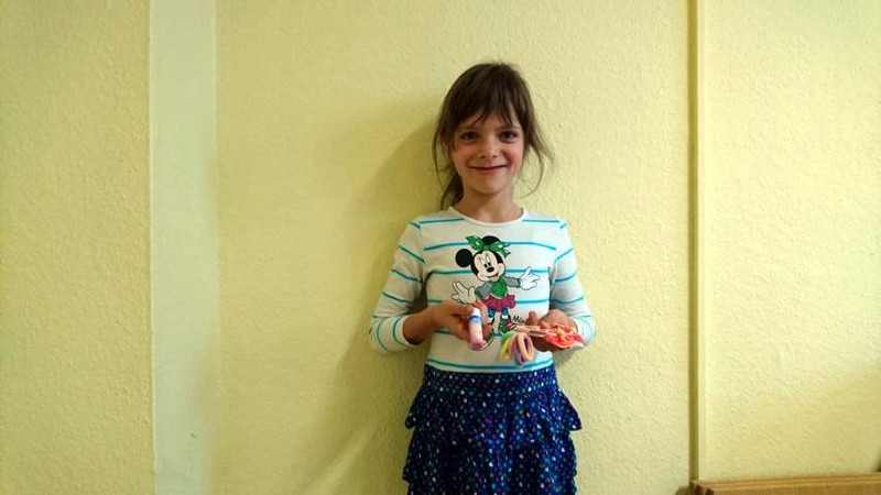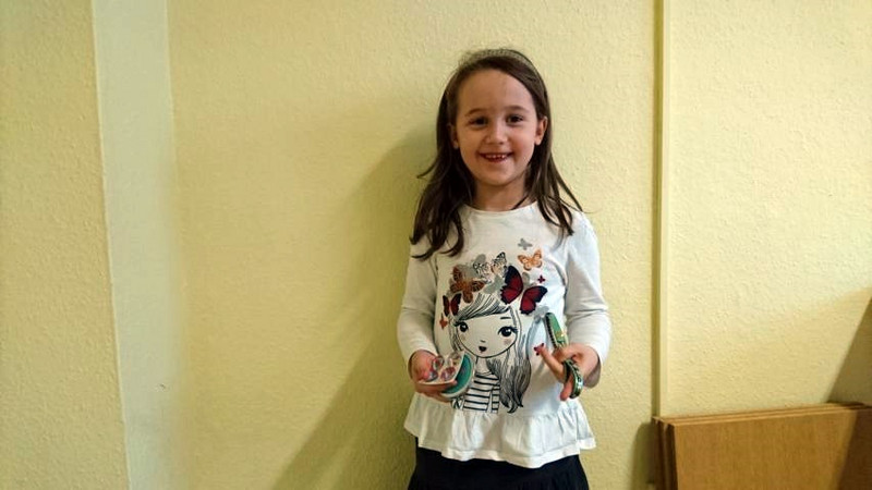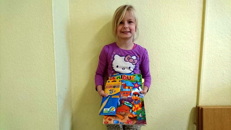 Von Frau Bregar gab es ein Geschenk - jeder von uns hat eine Dose Knete bekommen. Damit können wir im Unterricht arbeiten - Buchstaben und Zahlen kneten zum Beispiel. Aber das Schreiben mit Pinsel und Wasser an der Tafel macht auch noch viel Spaß!