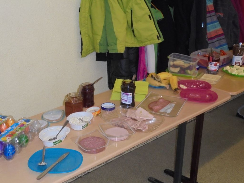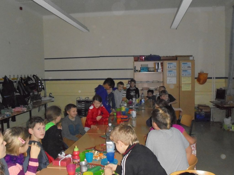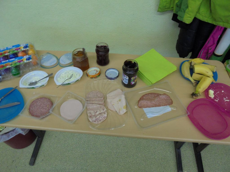 ... mit einem leckeren Frühstück und der Zeugnisausgabe. Nach einer kurzen und unruhigen Nacht freuten wir uns auf unser gemeinsames Frühstück. Wir hatten großen Appetit und verspeisten 60 Brötchen, 12 Bananen, 1 kg Weintrauben, Unmengen von Gurkenscheiben, Tomaten, Möhrenstiften und Paprikastückchen, 4 Liter Kakao und noch viele andere leckere Sachen. Nachdem wir satt waren, hatten wir noch Zeit, um ein bisschen zu spielen und dann ging es erst einmal an die frische Luft. Zur Zeugnisausgabe in der 3. Stunde gesellte sich dann auch wieder Frau Zieger zu uns, die inzwischen schon unser komplettes Frühstücksgeschirr abgewaschen hatte (DANKE!). Frau Neise machte es wieder sehr spannend, weil sie immer wenn wir schwatzten oder ein Kind in seine Zeugnismappe schmulte, sehr sehr langsam sprach. Nun wissen wir, in welchen Fächern wir noch besonders fleißig arbeiten müssen, um unsere Wunschzensuren zu bekommen. Jetzt freuen wir uns auf die Klassenfahrt und viele schöne gemeinsamen Momente in unserem letzten gemeinsamen Halbjahr.
