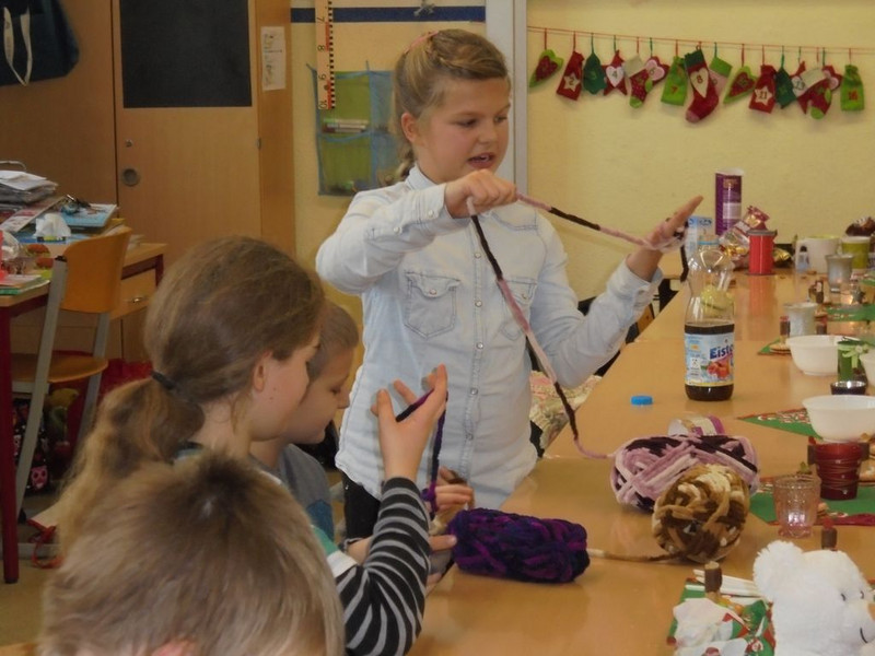 Nachdem wir den Weihnachtstag am Mittwoch mit dem Theaterbesuch eingeleitet hatten, folgte am Nachmittag unsere gemütliche Weihnachtsfeier. Wir vesperten gemeinsam, sangen Weihnachtslieder und lauschten 2 Kapiteln unseres Weihnachtskrimis. Aber richtig spannend wurde es dann beim Wichteln. Jedes Kind hatte ein Päckchen gepackt, die auf zwei Tischen (einer für die Jungen und einer für die Mädchen) präsentiert wurden. Nun ging die Würfelei los. Die Regeln waren sehr einfach; wer eine 6 würfelt, darf sich ein Päckchen aussuchen und es vor sich auf den Tisch legen. Öffnen war verboten. Nach einer gefühlten Ewigkeit hatten alle Geschenke einen neuen Besitzer gefunden. Jetzt endlich durften alle Päckchen geöffnet werden. Viele schönen Sachen bekamen einen neuen Besitzer und wurden mit Freude mit nach Hause genommen. Am Donnerstag genossen wir gemeinsam unser Weihnachtsfrühstück. Auch unsere Frau Zieger war zeitiger in die Schule gekommen, um mit uns die leckeren Sachen zu genießen. Nachdem wir alle satt waren, öffnete in unserem Zimmer die Wichtelwerkstatt. Leonard, Macy, Heidi, Max und Maria bastelten mit den anderen Kindern unserer Klasse viele schöne Überraschungen. so entstanden Weihnachtsengel, essbare Kerzen, Fröbelsterne, Schneeflocken aus Papiertüten und fingergestrickte Stirnbänder. Während der Bastelzeit gingen die Vorlesekinder in die Klasse 1c, um den Kleinen aus verschiedenen Bilderbüchern vorzulesen. Den Kinder aus der 1c hat das Vorlesen sehr gut gefallen.