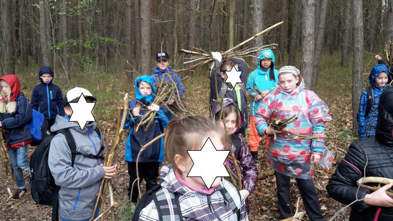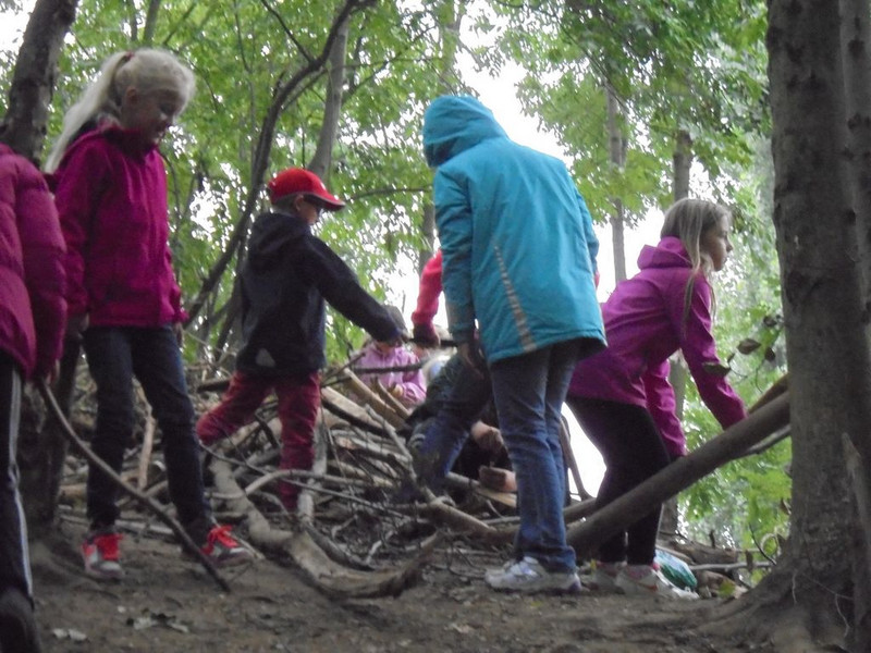 Viel Spaß hatten wir beim Wandertag mit den "Kleinen" aus der 1c. Die Spielgeräte auf dem Spielplatz waren schnell langweilig und wir verschwanden im Wäldchen und bauten uns ein "Haus".