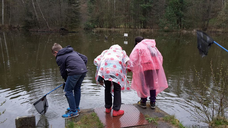 Leider ist unsere Klassenfahrt viel zu schnell vorbeigegangen, denn wir hätten die schöne Zeit gern noch ein bisschen genossen. Aufgeregt stiegen wir alle am Montag in den Bus und waren darauf gespannt, was wir alles erleben würden. Nachdem wir im Schullandheim angekommen waren, bezogen wir unsere Zimmer und mussten uns gleich im Kampf mit der Bettwäsche beweisen. Wir haben natürlich gesiegt. Nach dem Mittagessen (Nudeln mit Tomatensoße) marschierten wir in den Wald. Bewaffnet mit GPS-Gerät, Kompass und Laufzettel mussten wir in zwei Gruppen allein den Weg zurück zu unserem Startpunkt finden. Jeniffer, Macy und Fritz haben die Geräte perfekt bedient, sodass die Gruppe 2 sich nur 3mal „verirrte“ und in einer guten Zeit die Rallye absolvierte. An den verschiedenen Zwischenpunkten mussten wir Fragen beantworten, bevor es weiterging. Die erste Gruppe mit Frau Kirmse war etwas zügiger unterwegs und bewältigte den Weg ebenfalls ohne Verluste. Bei strahlendem Sonnenschein ließen wir gemeinsam mit der Klasse 4a den Nachmittag am Teich im Bungalowdorf ausklingen. Am Abend meldete sich dann der Rauchmelder lautstark und verschob die Schlafenszeit um einige Stunden nach hinten. Ein Großaufgebot der Feuerwehr durchsuchte das komplette Schullandheim, fand aber nichts, außer den Lärmverursacher. Der wurde entfernt und wir konnten endlich in unsere Betten kriechen. Am Dienstag genossen wir das schöne Wetter beim Filzen im Bungalowdorf, Spielen am Teich, Lesen auf der Wiese des Schullandheims und Faulenzen. Am Mittwoch beschäftigten wir uns noch einmal mit dem Wald. Wir erfuhren etwas über Rübezahl, sahen uns Wildschweinfelle, Fuchsfelle, Hörner und Kiefer von verschiedenen Waldtieren an und besprachen noch einmal, warum es wichtig ist, den Wald zu schützen. Dann wurden unsere Augen verbunden und wir lauschten den Geräuschen des Waldes, schnupperten die verschiedenen Gerüche und fühlten den Waldboden. Danach sahen wir uns noch einen Wildbeobachtungsplatz in der Nähe eines Hochstandes an. Zum Glück hielten die Wildschweine Abstand. Zum Schluss spielten wir noch FeuerWasserSturm nach Waldregeln. Am Donnerstag warteten noch einige schöne Momente auf uns, die uns den nahenden Abschied versüßten. Morgens hieß es: „Ab an den Teich“. Im Regen liefen wir die Strecke zum Bungalowdorf, wo uns die „Teichfrau“ erwartete. Mit Keschern fischten wir kleine Wassertiere aus dem Teich, die wir in einer Becherlupe betrachteten. Wir fanden Frosch- und Krötenlaich, Wasserläufer, Wasserskorpione und Wasserasseln. Auch ein kleiner Barsch landete im Kescher, der allerdings den Winter nicht überlebt hatte. Am Nachmittag wurde das Wetter besser und die Sonne kam wieder heraus. So konnten wir nach dem kofferpacken noch einige Stunden im Freien genießen. Zum Abendbrot heizten die Erwachsenen den Grill an und dank der guten Puste von Frau Schulz und den Wedelkünsten von Frau Zieger und Frau Wessolek konnten wir leckere Grillwürstchen mit Nudelsalat genießen. Danach entfachten Frau Neise und Frau Schulz das Lagerfeuer. Es gab gegrillte Maus am Spieß und Marshmallows vom Stock. Das war ein leckerer Nachtisch. Die Schlafenszeit wurde etwas nach hinten verlegt und wir fielen gegen 10.00 Uhr müde in unsere Betten. Am Freitagmorgen erwachten einige von uns mit weißen Flecken im Gesicht oder an den Händen. Niemand hat etwas gesehen, aber wir glauben, dass uns der Rübezahl in der Nacht einen Streich gespielt hat. Nachdem wir unsere Zimmer ausgeräumt und gewienert hatten, ging es zum letzten Mal zum Frühstück im Speiseraum. Wir genossen noch einmal die vielen leckeren Sachen und waren ganz erstaunt, als unser Bus plötzlich schon auf den Hof fuhr. Es hieß also Abschied nehmen. Viel zu früh kamen wir an der Schule an. Dort warteten schon einige Eltern und freuten sich, uns gesund und munter wiederzusehen.