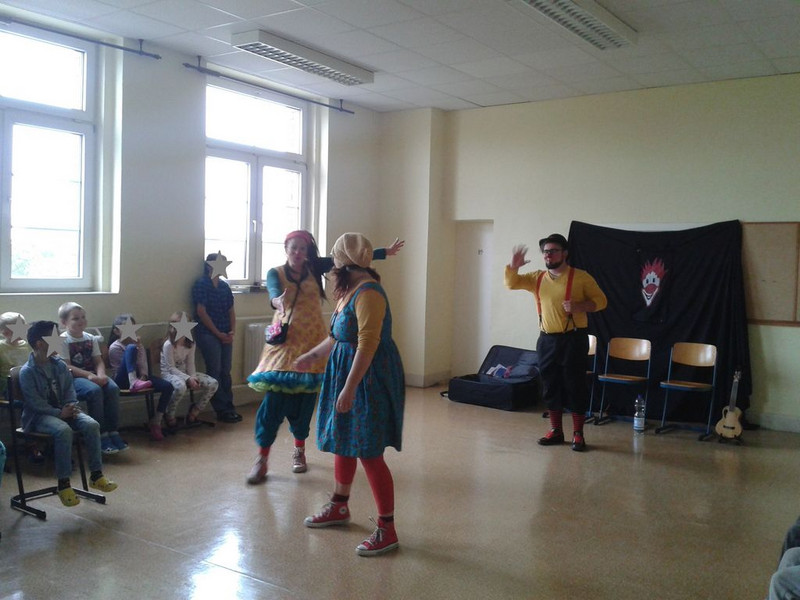 Vor den Ferien gab es außerdem einen Hefter voller Herbstaufgaben für uns. Manche fielen uns überhaupt nicht schwer und waren schnell erfüllt. Andere haben uns etwas mehr Zeit gekostet und wir mussten ganz schön knobeln und genau schauen. Frau Lehmann war stolz auf uns, weil wir so fleißig gearbeitet haben. Unser Herbstprojekt begann mit einem Ausflug in den Park. Hier konnten wir Blätter und Herbstfrüchte sammeln. So sah es im Klassenzimmer gleich ein wenig herbstlicher aus. Am Dienstag gab es eine Überraschung - drei Clowns sorgten für viel Gelächter.