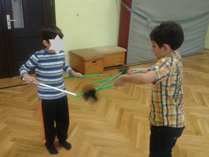 Gleich in der ersten Schulwoche war ein Fotograf da. Stolz präsentierten wir unsere Zuckertüten. Schon am nächsten Tag ging es sportlich zu. In der Turnhalle warteten Artistik-Stationen auf uns. Wir durften mit Tellern, Flower Sticks und Diabolos jonglieren, außerdem versuchten wir uns an kleinen Pyramiden.