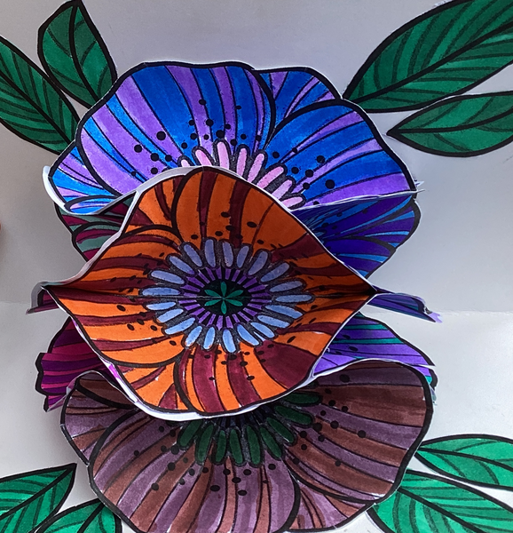 Frau Hontschik: "Wir basteln schöne Muttertagsgeschenke als Karte. Wenn man sie aufmacht, erscheint ein Blumenstrauß."