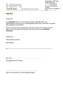 Sollte Ihr Kind unter einer Allergie leiden oder Sie wünschen aus anderen Gründen, dass Ihr Kind nicht geschminkt werden soll, bitten wir Sie uns dies schriftlich mitzuteilen.