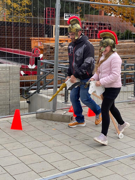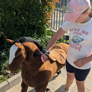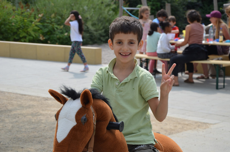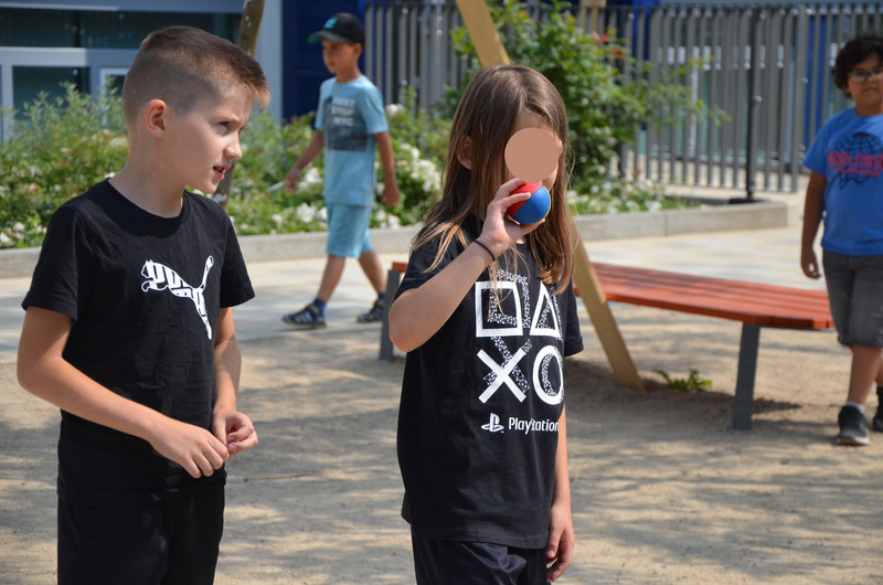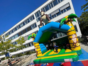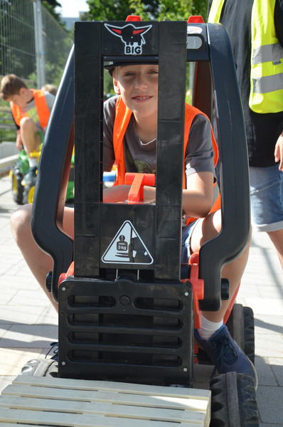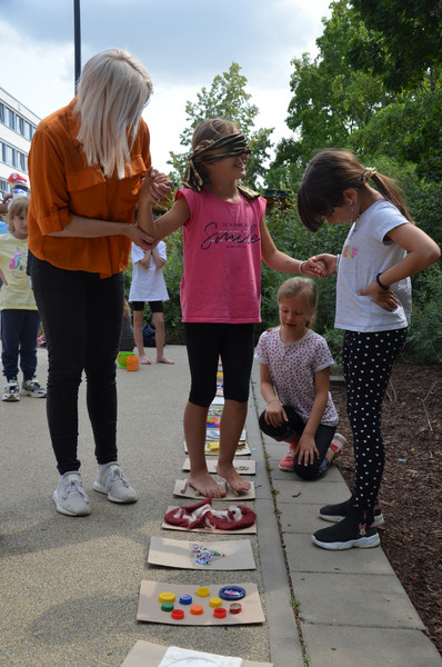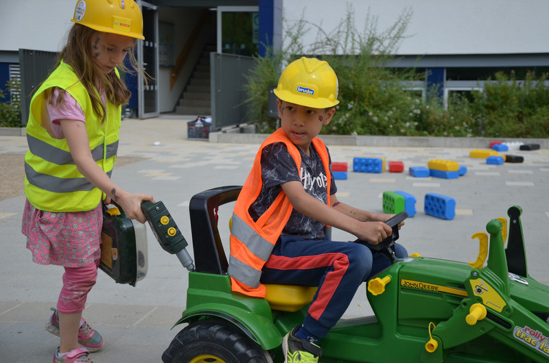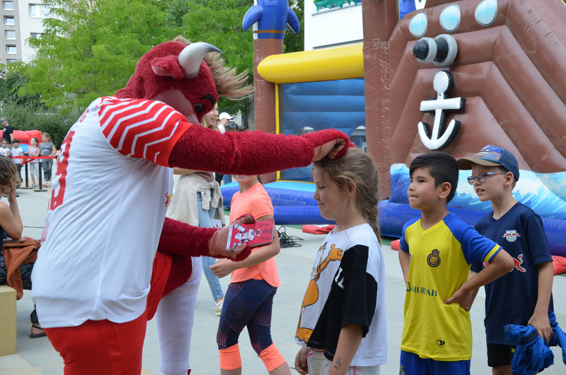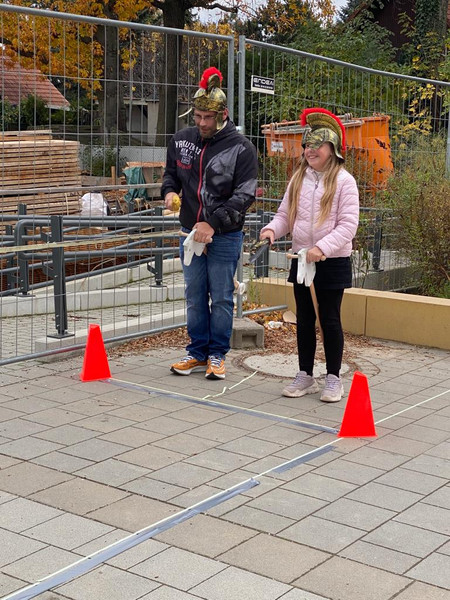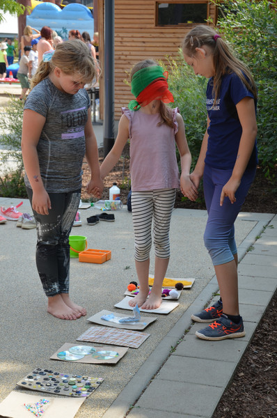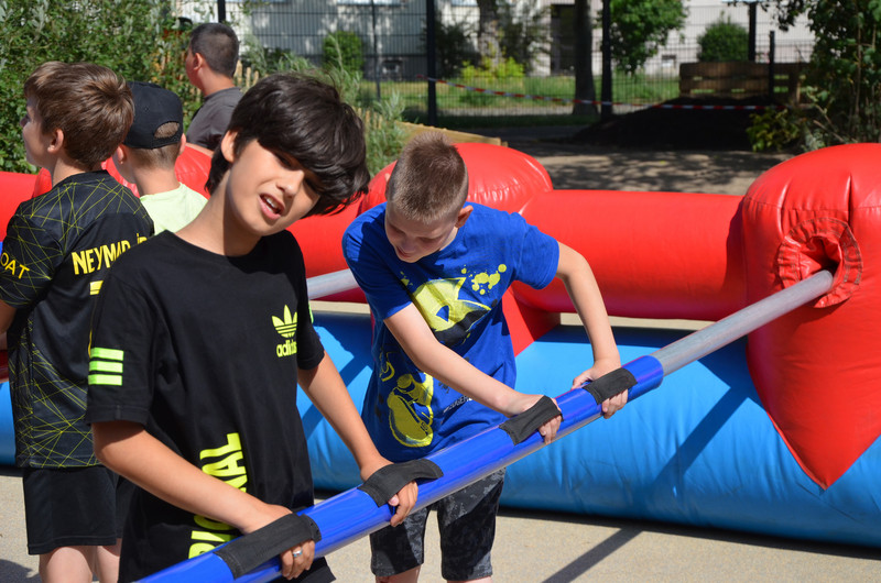 Das Schuljahr war anstrengend, die Zeugnisnoten stehen fest und bei der Hitze kann sich kaum noch jemand konzentrieren. Darum haben sich in der letzten Schulwoche vor den Sommerferien alle den Spiel- und Spaßtag mehr als verdient. Bei strahlendem Sonnenschein konnten die Kinder den Tag auf dem Schulhof in vollen Zügen genießen. Es gab zahlreiche Stationen, die für jede Menge Spaß und Abwechslung sorgten. Eine der Attraktionen war die Piratenhüpfburg, eine aufblasbare Hindernisbahn, auf der die Kinder nach Herzenslust herumspringen, klettern und rutschen durften. Für eine erfrischende Abkühlung sorgte die Wasserbaustelle, an der die Kinder ein eigenes Wassernetz konstruieren konnten. Auch an der Baustelle fanden unsere Baumeister und Baumeisterinnen genug Material zum Stapeln und Konstruieren. Für unsere Tierliebhaber gab es einen kleinen Ponyhof, auf dem die Kinder die Möglichkeit hatten, die fahrbaren Pferdchen zu reiten und zu striegeln. Sportlich wurde es beim Tischtennis und beim Faustball. Ein menschlicher Riesenkicker sorgte für spannende Fußballmatches, bei denen die Kinder ihr Können unter Beweis stellen konnten. Eine weitere sportliche Herausforderung war die endlose Kletterwand, die ganz schön anstrengend war und viel Geschick erforderte. Wer es ein bisschen ruhiger mag, konnte am Barfußpfad verschiedene Materialien unter den Füßen spüren und so seine Sinne schärfen. Auch bei der Tatoostation war von Drachen bis Meerjungfrauen für jeden etwas dabei. Besonders Aufregend war dann noch der Besuch vom RB-Maskottchen Bulli. Er war zum ersten Mal an unserer Schule und alle Kinder hatten die Möglichkeit, sich ein Autogramm und ein gemeinsames Foto zu ergattern.