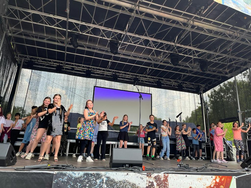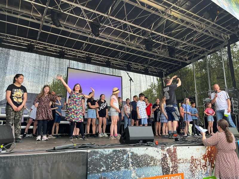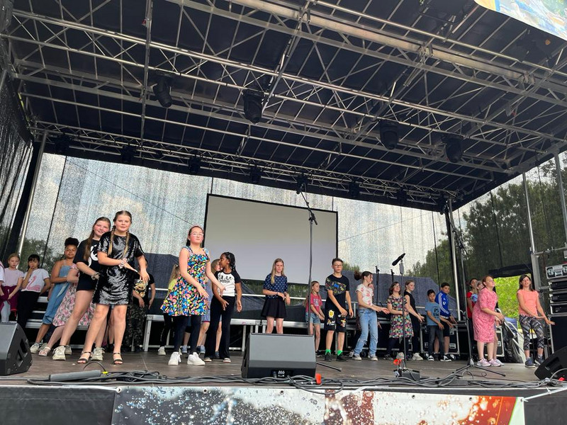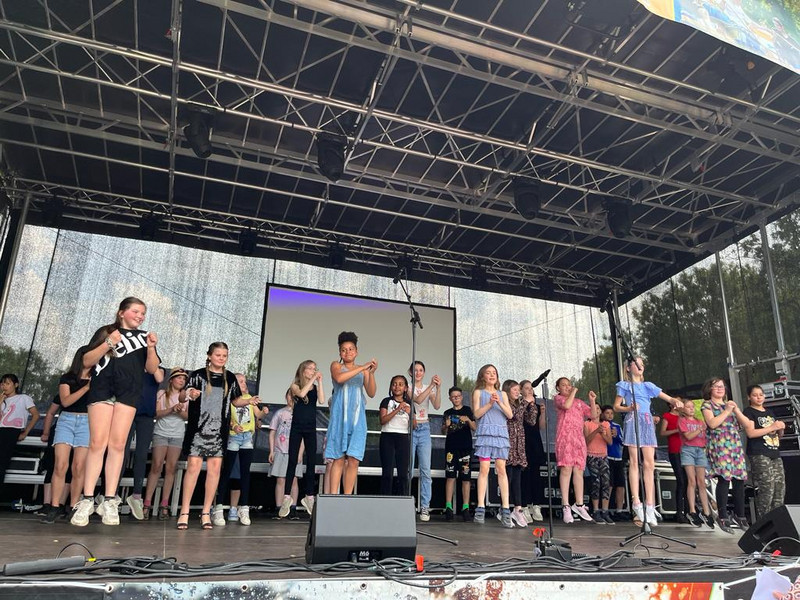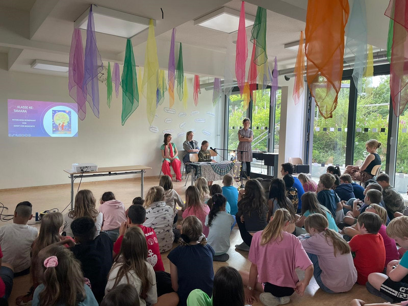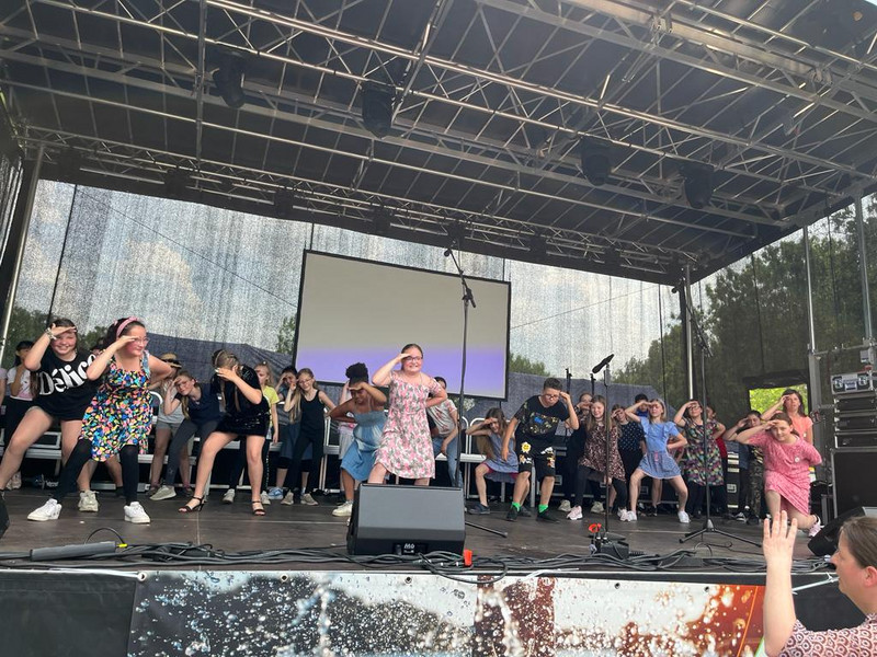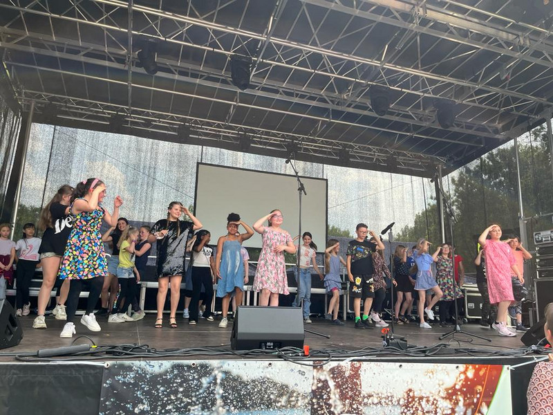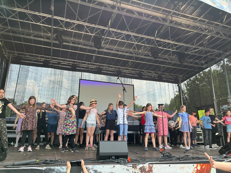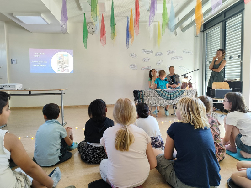 In der vierten Klasse steht jedes Jahr eine besondere Mutprobe an: der Auftritt beim Wasserfest am Baggersee auf der großen Bühne vor sehr vielen bekannten und unbekannten Leuten. Dafür haben die Schüler und Schülerinnen mit Frau Jünger wochenlang geprobt und ein kleines Programm auf die Beine gestellt. Es gab eine kleine Piratenreise mit einer Bodypercussion zum Soundtrack von Fluch der Karibik, einem Tanz zu Wellerman und zum Abschluss haben die Kinder noch Somewhere over the rainbow gesungen. Das Publikum war so begeistert, dass die vierten Klassen sogar noch eine Zugabe geben sollten. Wir fanden den Auftritt sehr gelungen und die Kinder waren ganz schön mutig!