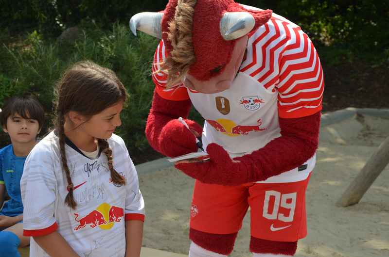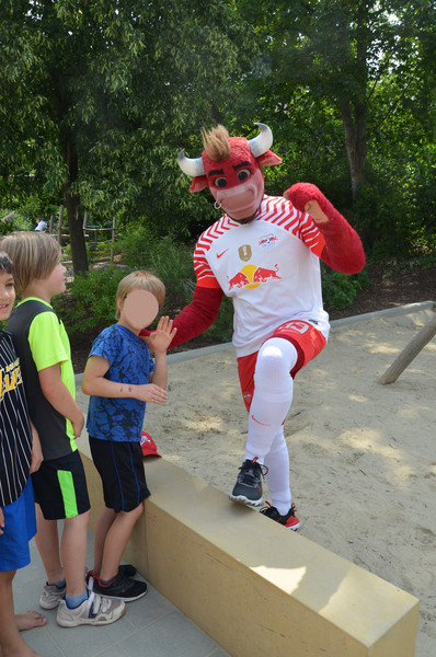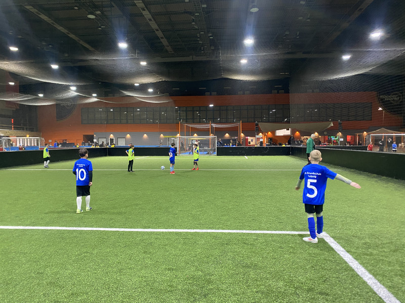 Auch in diesem Jahr hatten einige Top-Fußballer unserer Schule die große Ehre, unsere Grundschule beim RB Schülerpokal zu vertreten. Am ersten Turniertag kamen sieben Kinder der 1. und 2. Klassen mit, am zweiten Tag acht Kinder der 3. und 4. Klassen. Auf der Fahrt zur Soccerworld waren Taktik und die großen Vorbilder beherrschendes Thema im Bus. Alle waren hochmotiviert und aufgeregt. Nach einer Aufwärmphase in der Soccerworld hielt der echte Stadionsprecher Tim Thoelke neben dem echten RB-Maskottchen Bulli die Eröffnungsrede und dann ging es auch schon los. Es folgten intensive und spannende Spiele auf WM-Niveau. Unsere Spieler haben alles gegeben und gekämft bis zum Schluss. Die Mannschaften der anderen Schulen waren harte Gegner und so hat es am Ende für einen 25. Platz bei den 1. und 2. Klassen und für einen 14. Platz bei den 3. und 4. Klassen gereicht.