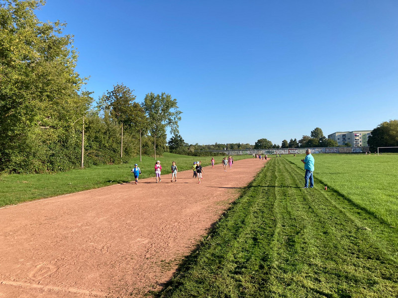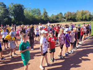 Am 8. September haben unsere Schülerinnen und Schüler ihre Laufschuhe geschnürt und sind zu unserem alljährlichen Sponsorenlauf angetreten, um die Kasse des Fördervereins der Schule zu füllen. Bei bestem Wetter haben unsere Sportskanonen auf dem Sportplatz alles gegeben. Klassen, die gerade nicht gelaufen sind, konnten ihren Bewegungsdrang an vielen Stationen auf dem Schulhof ausleben. Der Tag war ein voller Erfolg. Insgesamt sind die Kinder 1687 Runden gelaufen, das entspricht einer Strecke von unglaublichen 675 Kilometern. Der Förderverein darf sich über Spenden in Höhe von 4.251,80 € freuen. Damit lassen sich auf jeden Fall neue Projekte realisieren. Wir freuen uns über so viel Einsatz und Spendenbereitschaft. Danke an alle Unterstützer und Unterstützerinnen!