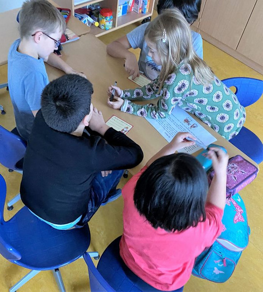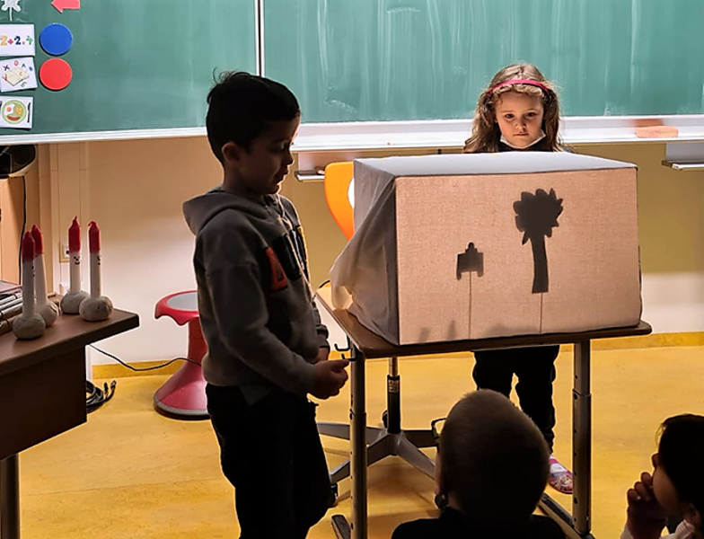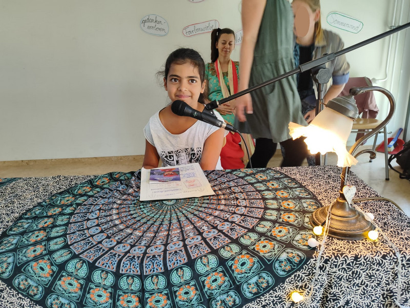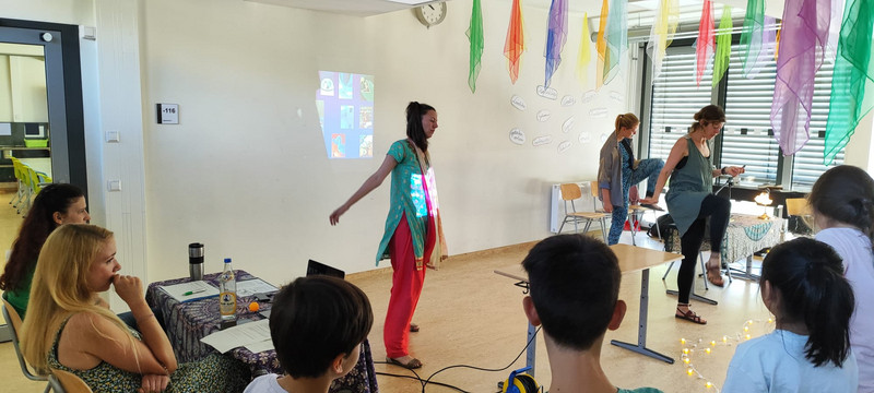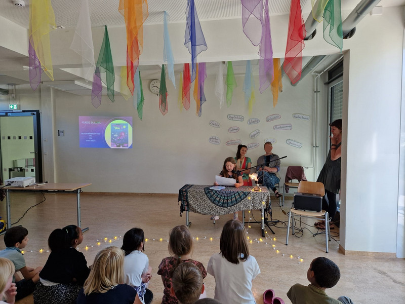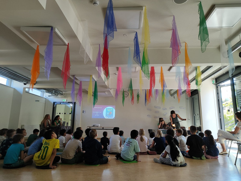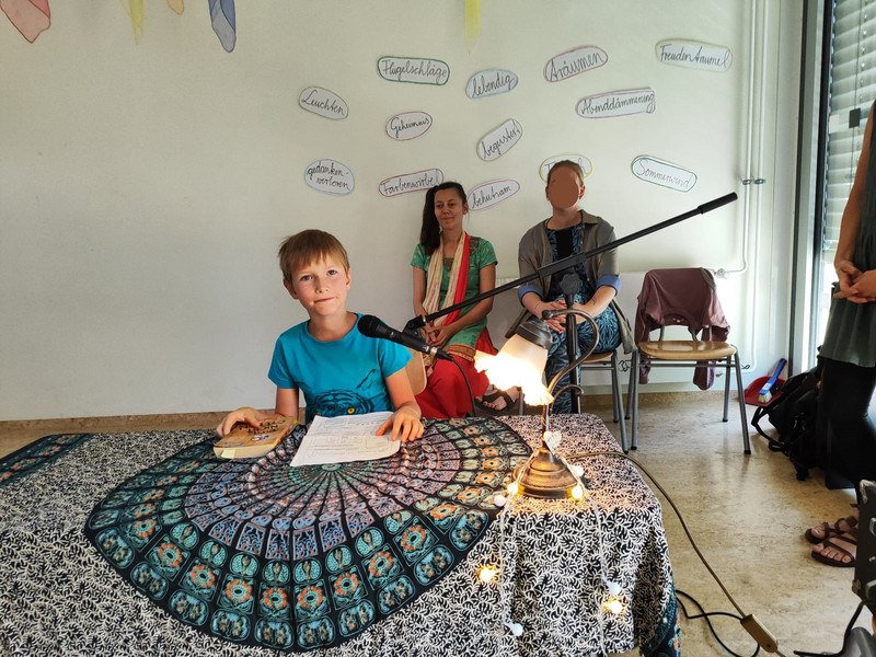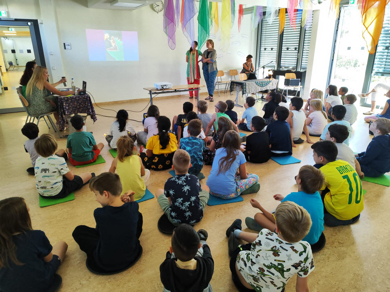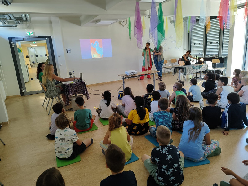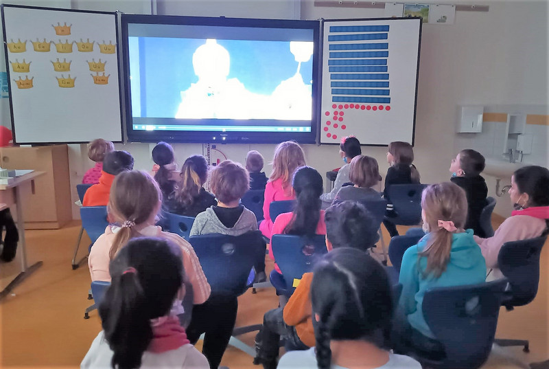 Als weiterem Programmpunkt durften in der Projektwoche endlich mal alle Kinder in den Genuss des Erzählraumes kommen. Die Geschichtenerzählerin, die sonst nur die zweiten Klassen besucht, hat eine Geschichte von Wolf und der Steinsuppe erzählt und alle haben gespannt zugehört.