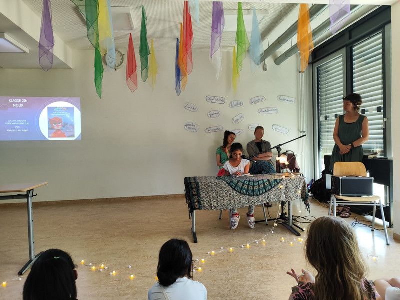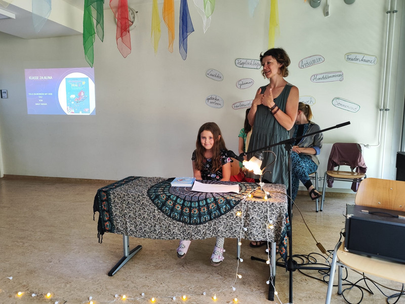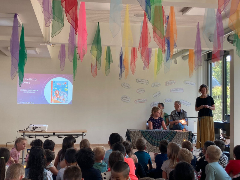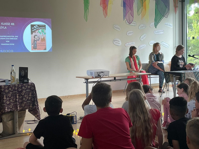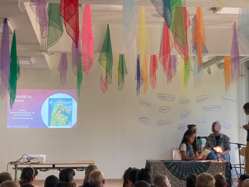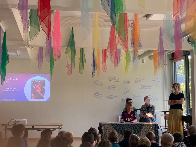 Auch am Ende dieses Schuljahres konnte der bei den Schülerinnen und Schülern sehr beliebte Lesewettbewerb stattfinden. Dafür hat jede Klasse ihren Lesekönig oder ihre Lesekönigin gewählt. Diese Kinder sollten mutig genug sein, die Klasse zu vertreten. Der Lesewettbewerb stand unter dem Motto fantastischer Bücherzauber. Die Lehrkräfte haben ein bezauberndes Rahmenprogramm vorbereitet, das dem Motto sehr gerecht wurde. Die Kinder waren total fasziniert, als zwei Fantasiewesen in die Aula kamen und den Weg zurück in ihre Geschichte gesucht haben. Die vorlesenden Kinder waren die Helfer und Helferinnen und haben unter den Augen der kritischen Fachjury ihr Bestes gegeben. Die anderen Schüler und Schülerinnen haben gespannt zugehört. Weil das auf Dauer ganz schön anstrengend ist, gab es zur Auflockerung zwischendurch eine kleine Bewegungsgeschichte. Am Ende fanden die beiden Fantasiewesen in ihre Welt zurück. Die Sieger wurden in der darauffolgenden Sternstunde bekannt gegeben.