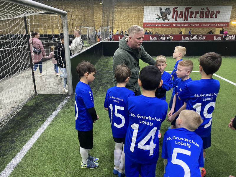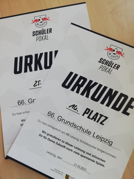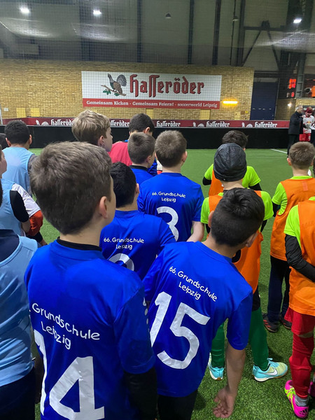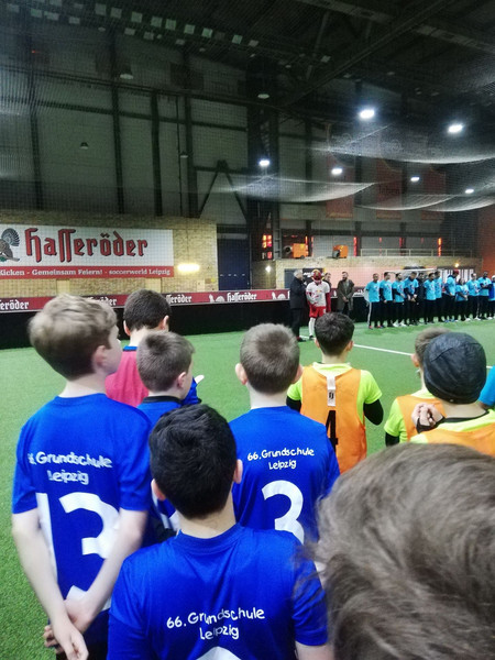 Am 12. Und 13. März war es wieder soweit – der alljährliche RB-Schülerpokal stand an. Ein sportliches Event, gesponsert vom Fußballclub RB Leipzig, das Leipziger Grundschulen die Chance gibt, sich in der Soccerworld in ihrem fußballerischen Können zu messen. Natürlich waren auch wir, die 66. Grundschule, dank einiger Eltern auch mit eigenem Fanclub, an beiden Tagen mit von der Partie und haben gezeigt, was in uns steckt. Sowohl das Team der ersten und zweiten Klassen, wie auch die Mannschaft der Dritt- und Viertklässler waren hochmotiviert und bereit, alles zu geben. An beiden Tagen hat sich wieder gezeigt, wie sehr wir uns auf unsere Schüler verlassen aber auch stolz sein können. Ohne Ausnahme haben unsere Jungs gekämpft, Ehrgeiz gezeigt, sich von verlorenen Spielen nicht unterkriegen lassen und allen voran fair miteinander als Team gespielt. Nach intensiven Gruppenphasen gegen harte Gegner, spannenden Elfmeterschießen und Fußbällen, die in den aller letzten Sekunden noch ins Tor gerollt sind, hat es für die Jungs der ersten und zweiten Klassen für den 15. Platz von insgesamt 32 Mannschaften gereicht. Am zweiten Tag hat die Mannschaft der Dritt- und Viertklässler nach wirklich hart umkämpften Matches, den vorletzten Platz belegen können. Und auch hier zeigte die Freude und der Humor, mit denen die Jungs das Ergebnis hinnahmen nur eins – Dabei sein ist alles! Egal welcher Platz – Wir sind stolz auf euch, dass ihr unsere Schule und unsere Werte so toll vertreten habt!