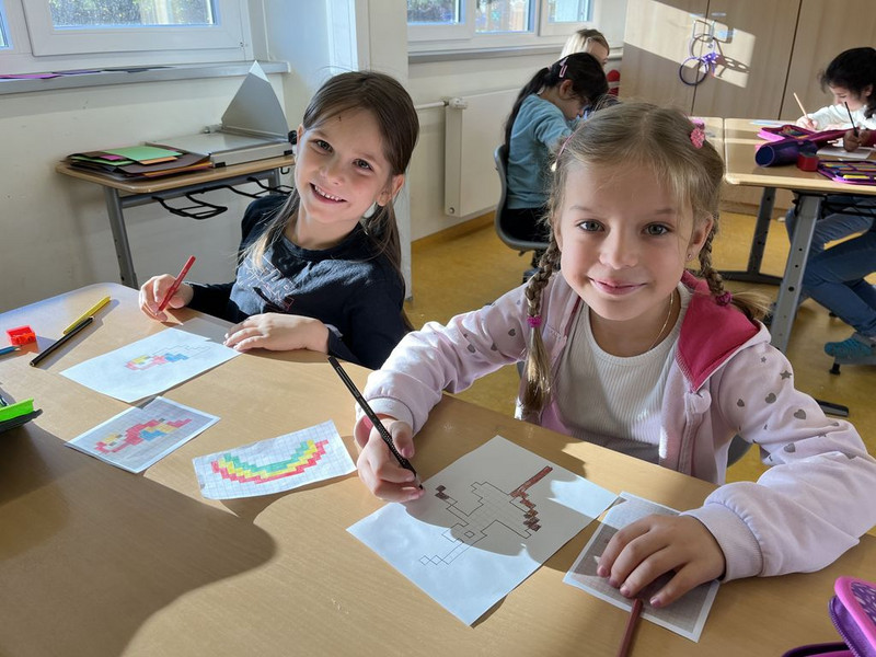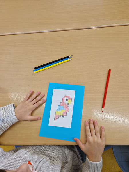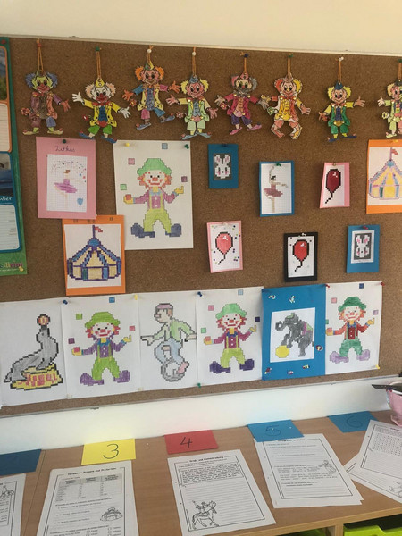 In der Zirkusprojektwoche am Dienstag wurde uns das Pixel Art angeboten. Frau Ganguly, Frau Schöning und Frau Jünger führten es durch. Das Pixel Art Angebot war im Kunstzimmer. Pixel Art ist wo man auf karierten Blättern in Kästchen malt. Es war toll bei der Zirkusprojektwoche.