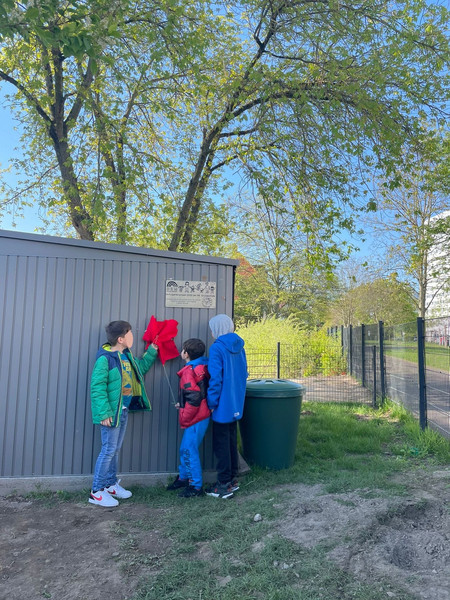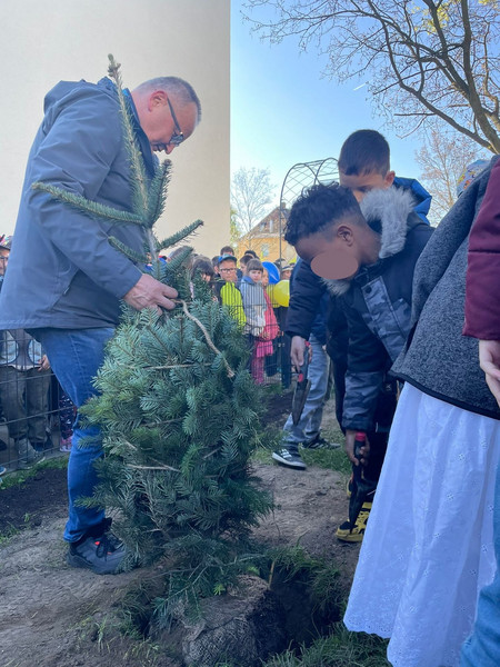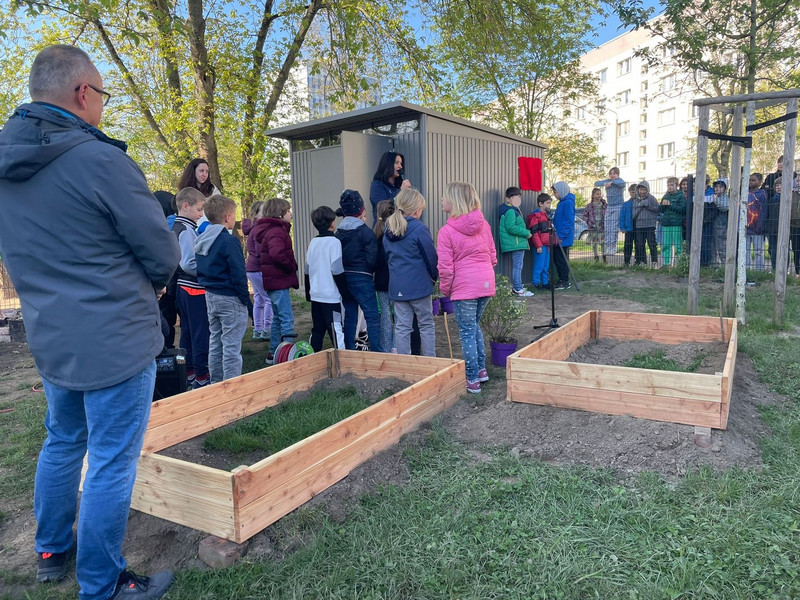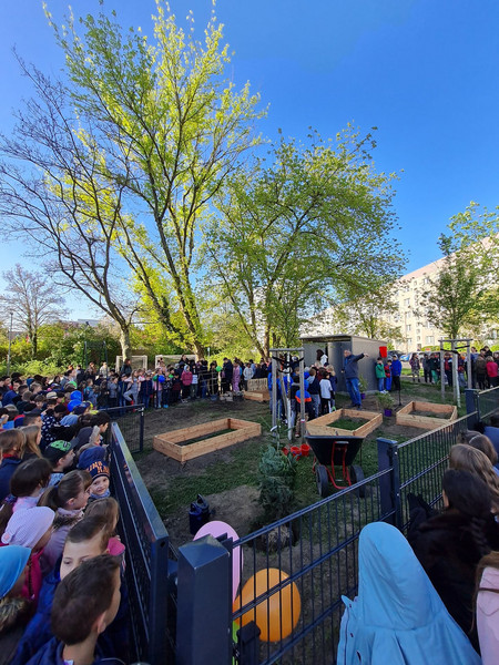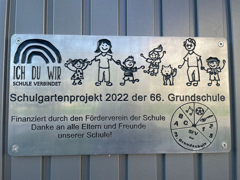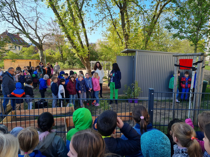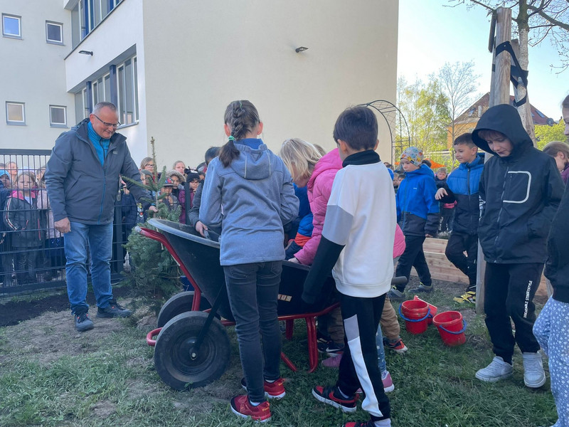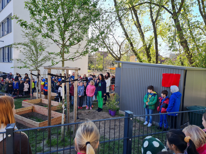 Am 3.5.2023 haben sich alle Klassen auf dem Schulhof getroffen. Anlass war die offizielle Einweihung unseres Schulgartens. Frau Brauer hat eine Rede gehalten und dem Förderverein gedankt, ohne den dieses Projekt nicht möglich wäre. Das geheimnisvolle Schild am Gartenhäuschen wurde enthüllt und ein kleiner Tannenbaum eingepflanzt. Dieser soll in der Weihnachtszeit geschmückt und beleuchtet werden.