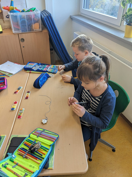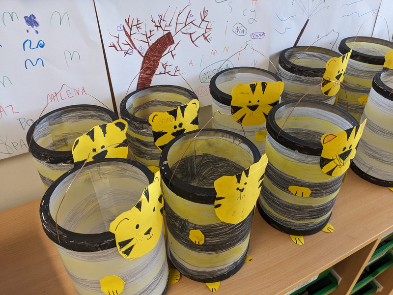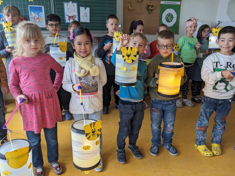Alle haben in den Wochen fleißig für das anstehende Schulfest ein Stück eingeübt und etwas für die Verkaufsstände hergestellt. Es sind wunderschöne Laternen, Martinsgänse und andere tolle Bastelarbeiten entstanden.