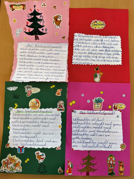 In diesem Jahr konnte endlich wieder unser traditionelles Adventsliedersingen stattfinden. Jede Klassenstufe bereitet für eine andere Klassenstufe ein kleines Weihnachtsprogramm mit Liedern, Gedichten oder Tänzen vor. Dieses führen sie in der Aula auf und danach wird eine Kerze am Adventskranz angezündet. Die Atmosphäre ist immer schön weihnachtlich. Es gibt einen Weihnachtsbaum, der Stern leuchtet und das Licht wird gedimmt. Die Beiträge waren ganz vielfältig und zum Schluss gab es für jede Klasse ein Geschenk von der Schule.