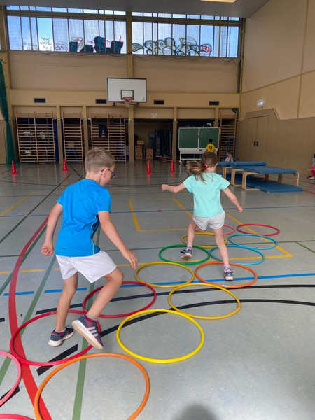 Ein Tag voller Spaß und sportlicher Herausforderungen fand in der letzten Schulwoche statt: das Sportfest, das sowohl auf dem Sportplatz als auch in der Turnhalle ausgetragen wurde. Die Schülerinnen und Schüler hatten die Möglichkeit, an verschiedenen Stationen ihre sportlichen Fähigkeiten unter Beweis zu stellen und jede Menge Spaß zu haben.